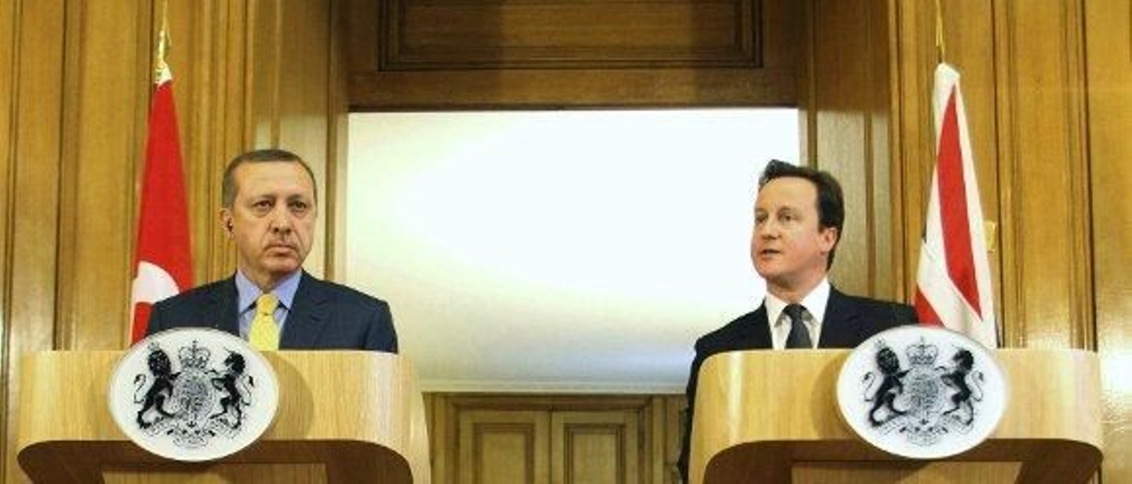 En una comparecencia en Londres junto al primer ministro turco, Recep Tayyip Erdogan, Cameron afirmó: "He sido claro desde el principio en que queremos que Gadafi se vaya y que sus secuaces recuperen el sentido y abandonen este régimen brutal".