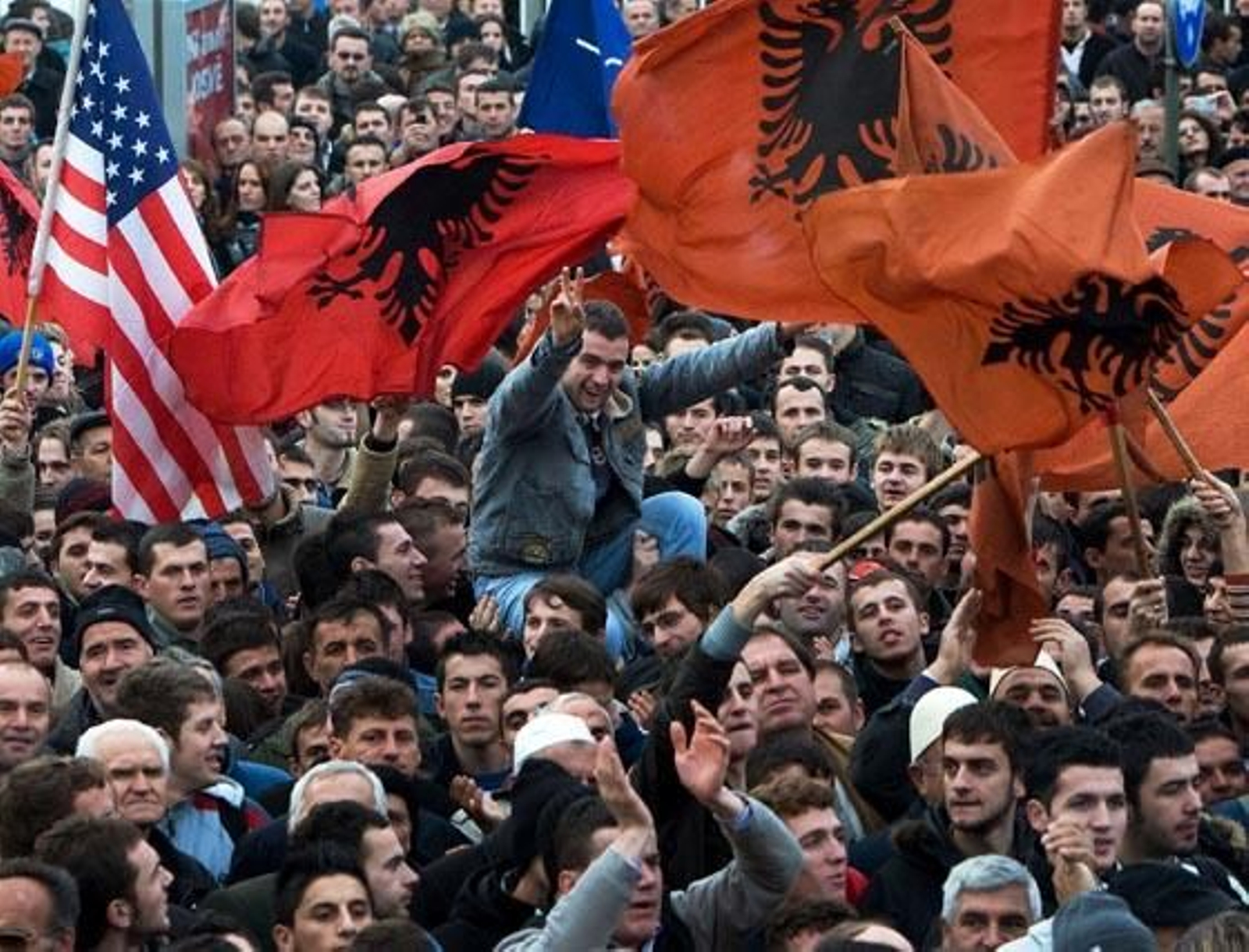 Según informa la agencia serbia de noticias Beta, los manifestantes, en su mayoría estudiantes de la Universidad de Pristina, han desfilado por el centro de la ciudad con banderas albanesas, estadounidenses y de la OTAN. Asimismo, portaban pancartas con lemas como "La independencia es la única opción" o "Serbia arderá para siempre en el infierno".