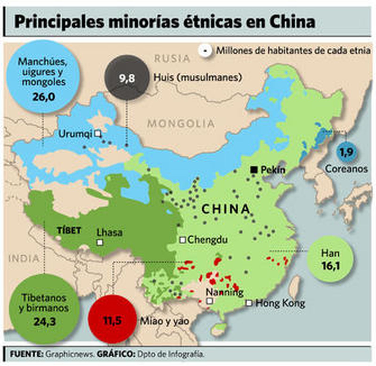 Los chinos han, percibidos por los uigures de Xinjiang como opresores, buscaban vengarse por los disturbios del domingo que dejaron 156 muertos y más de 1.000 heridos, por los que fueron detenidas 1.434 personas acusadas de asesinato, agresión y saqueos. "Los uigures vinieron a nuestro sector para romper cosas y ahora nosotros vamos a golpearlos a ellos", dijo uno de los manifestantes han con un caño de metal en la mano.