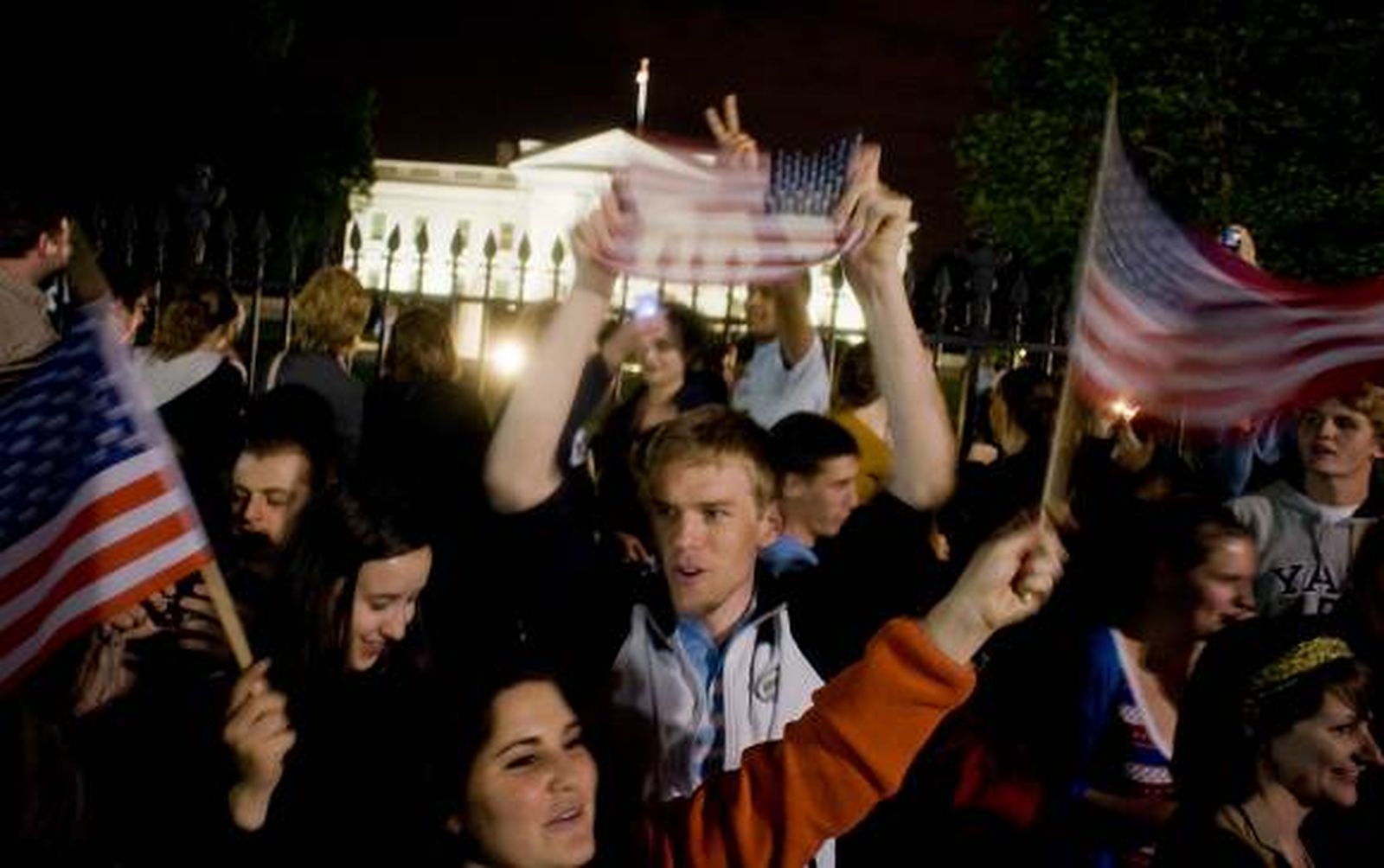 Inmediatamente después de que corriera por twitter y los distintos medios de comunicación la noticia de la muerte del cerebro de los ataques del 11 de Septiembre de 2001, grupos de personas, que pronto se contaron por cientos, comenzaron a concentrarse en las inmediaciones de la Casa Blanca.