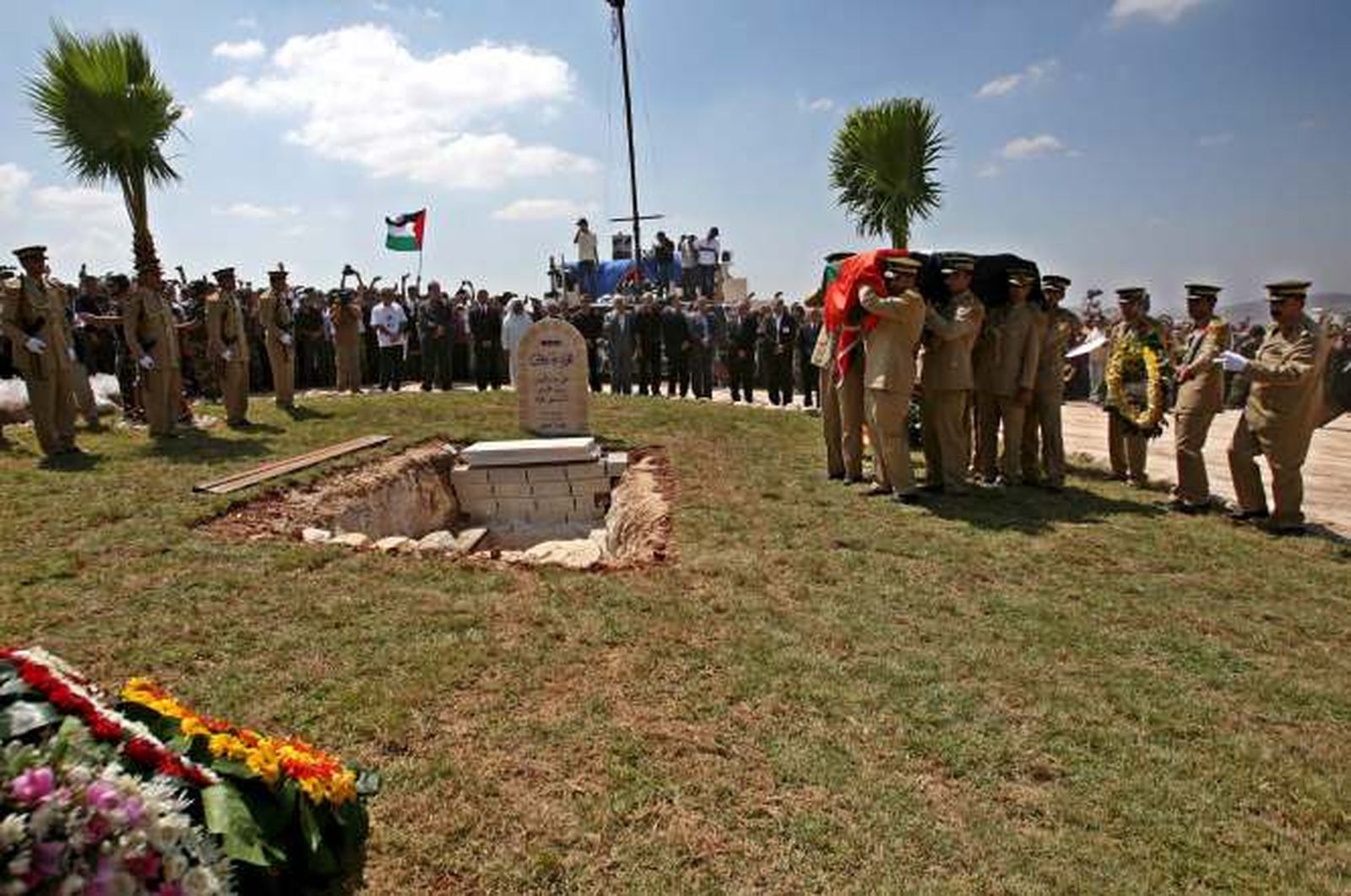 Los restos de Darwish, fallecido el pasado sábado en una clínica de Houston (EEUU) tras una operación a corazón abierto, llegaron esta mañana a la capital jordana, Ammán, para después ser trasladados en helicóptero a la Muqata, la sede presidencial palestina, en Ramala. Allí, donde se alza el mausoleo al histórico rais Arafat, el féretro de Darwish fue objeto de un recibimiento oficial generalmente reservado a jefes de Estado en el que el presidente palestino, Mahmud Abás, lo calificó de "maestro de la palabra y la sabiduría".
