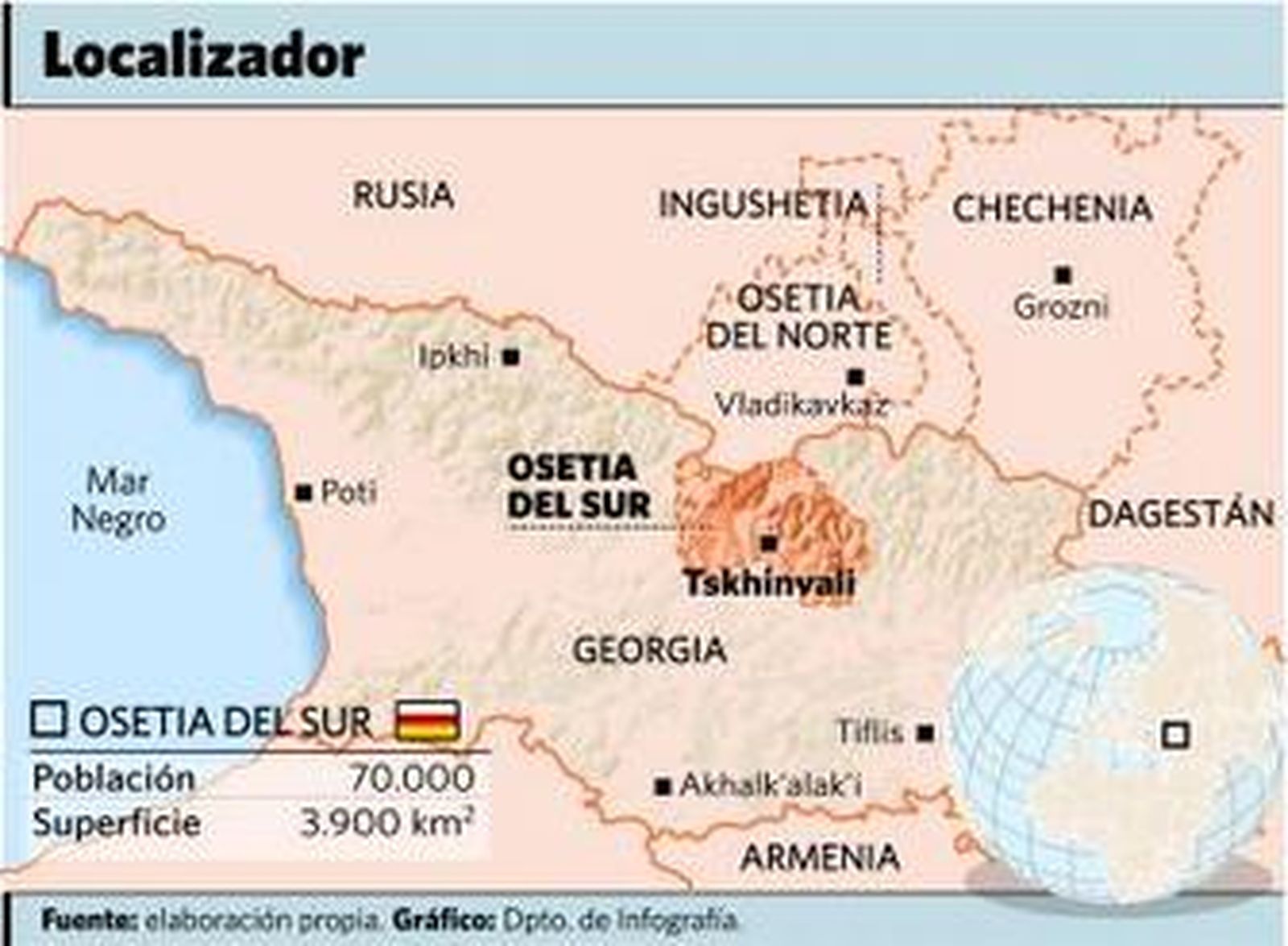 Osetia del Sur, al igual que otra región georgiana, Abjasia, se escindió de facto del país georgiano, y proclama su aspiración de unirse a la república rusa de Osetia del Norte.