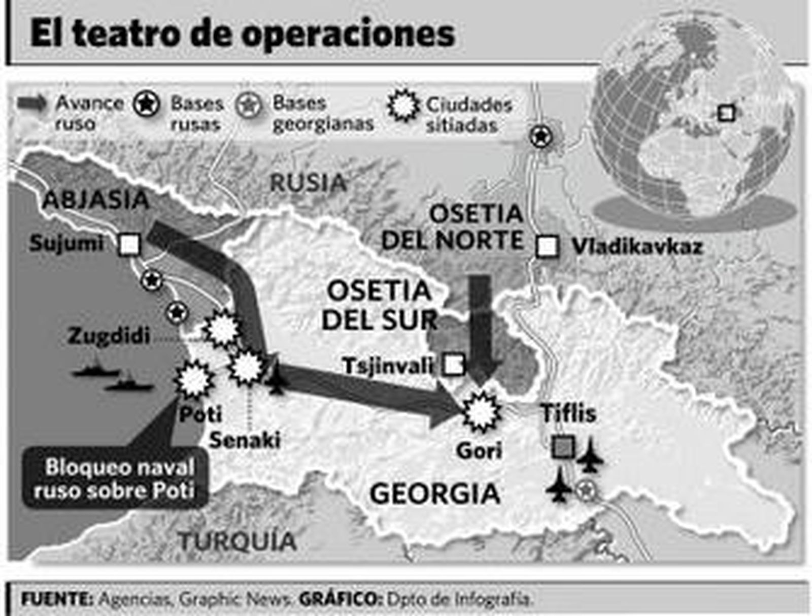 "El objetivo de la operación para imponer la paz se ha cumplido. La seguridad de las tropas de paz y de los ciudadanos rusos está garantizada", dijo Medvedev sobre los habitantes de la separatista región georgiana de Osetia del Sur.