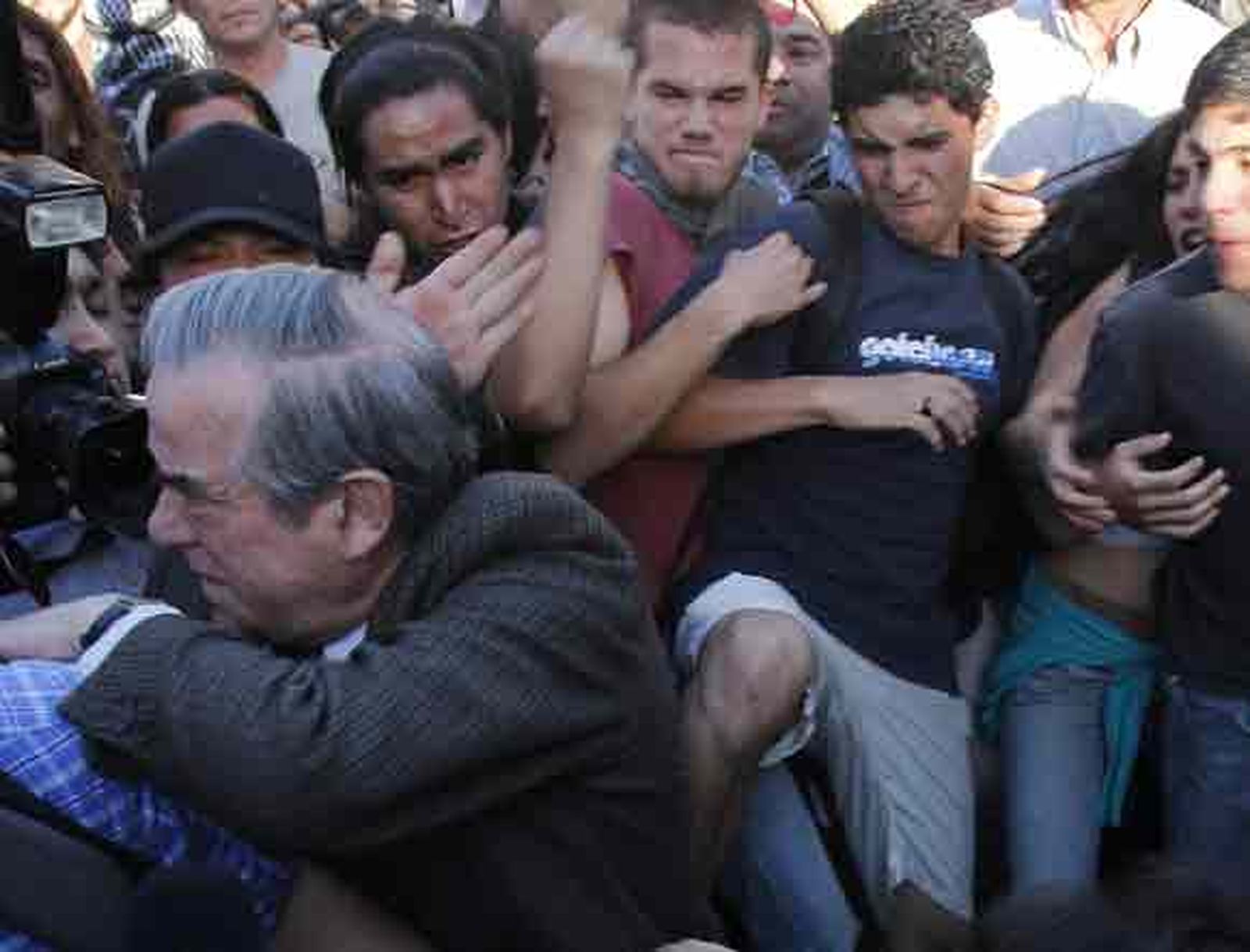 Bajo intensos gritos de "¡Asesino, asesino!", y gruesas disputas verbales, los manifestantes intentaron evitar el ingreso de los asistentes al homenaje, que se realizó en el Club Providencia, en el oriente de Santiago.