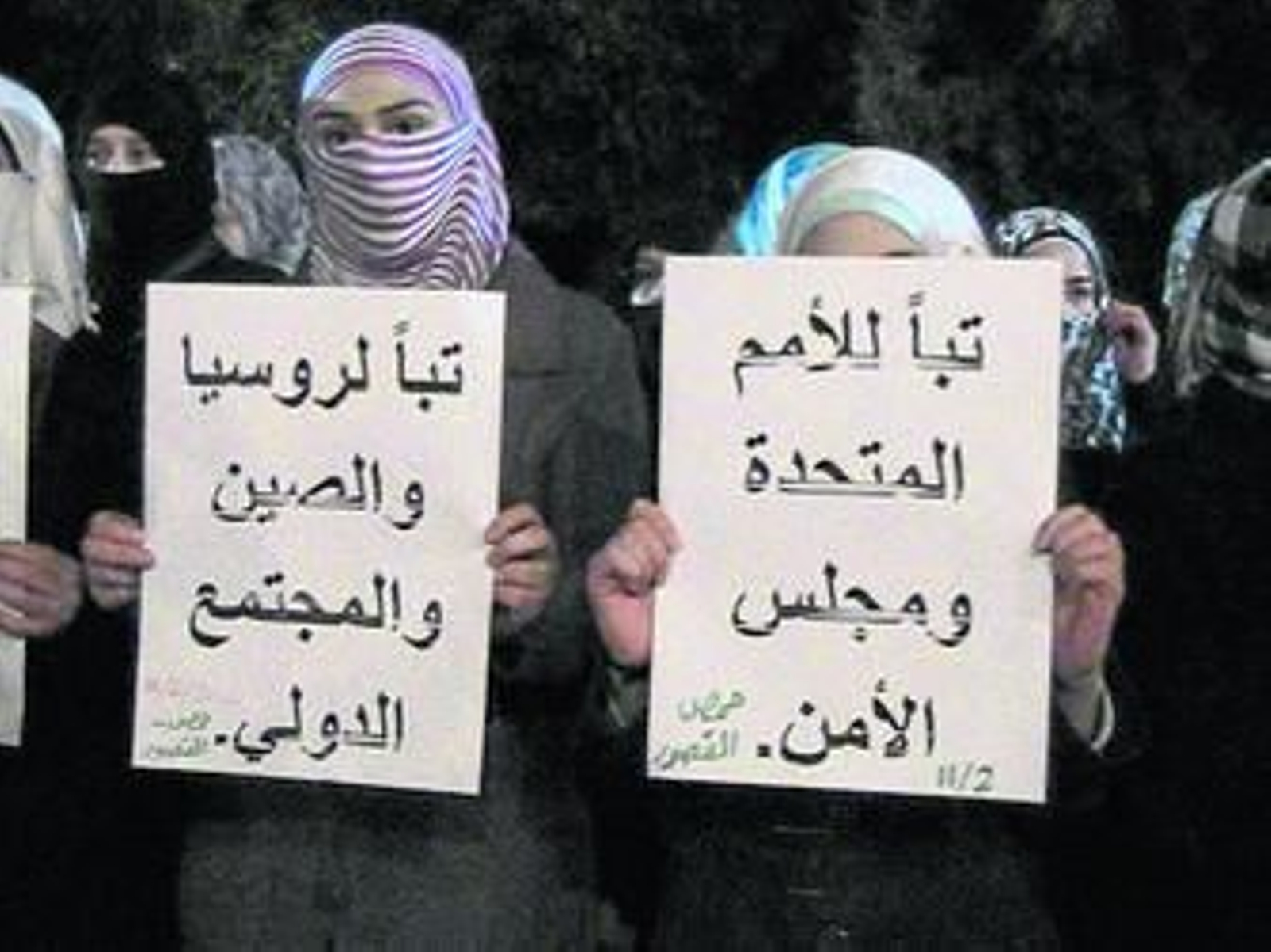Varias mujeres se manifiestan en un pueblo cercano a Homs pidiendo la marcha del poder de Asad.