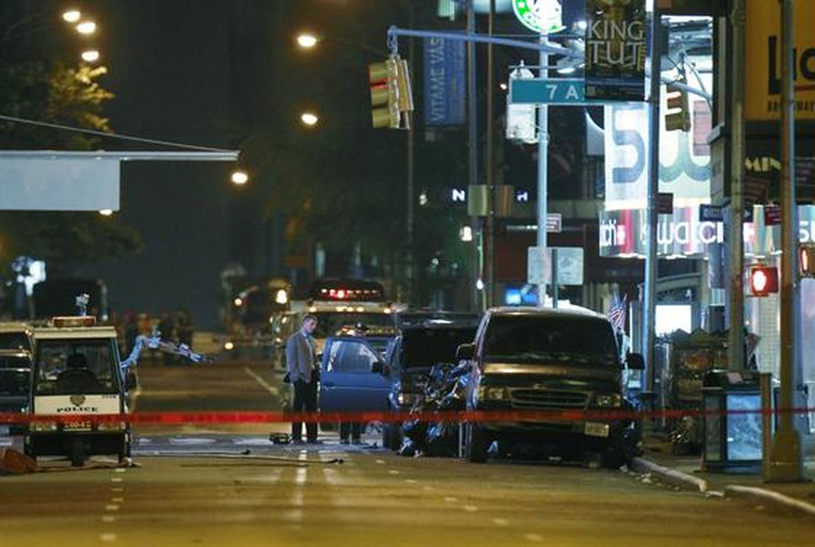 El acceso a Times Square, un cruce entre la famosa calle de Broadway y la Séptima Avenida, estuvo bloqueado al público durante un total de ocho horas. La plaza es el corazón de la zona de los teatros de Manhattan y es famosa mundialmente por su imponente iluminación y letreros de neón. Broadway fue cerrada entre las calles 43 y 46, y miles de turistas y asistentes a los teatros aledaños tuvieron que abandonar el lugar. Muchos curiosos se agolparon ante las barreras para tomar fotografías con sus teléfonos móviles y videocámaras de los vehículos policiales y de los bomberos que llegaron al lugar.