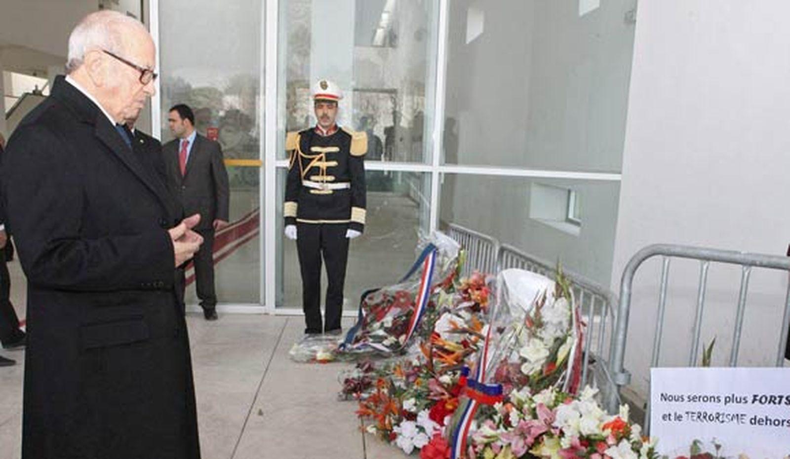 En una ofrenda floral delante de la puerta del Museo del Bardo de Túnez, escenario de la tragedia, el mandatario explicó que en las imágenes de las cámaras de Seguridad se ven tres individuos armados y que el fugado "no llegará muy lejos". Se trataría del joven Maher Ben Muldi Gaidi, sobre quien hay un aviso de busca y captura como "presunto implicado", según anunció este sábado el ministerio de Interior tunecino.
