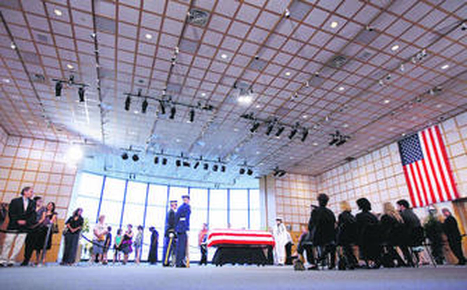El féretro cerrado con los restos mortales permaneció expuesto al público el jueves y ayer en la biblioteca JFK, donde anoche se celebró una homilía privada a la que asistieron senadores de ambos partidos.