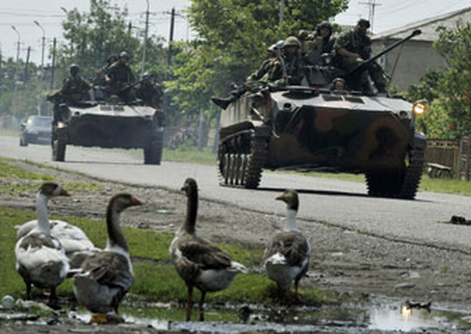Según la cadena de televisión Rustavi-2, la columna georgiana, integrada por una cerca de treinta vehículos de distinto tipo, llegó hasta el centro de la ciudad.