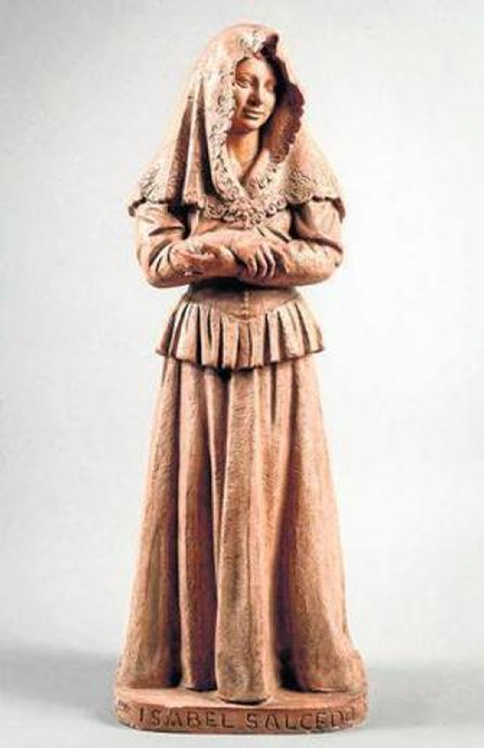 La hija de Vargas fue tallada en Sevilla en 1951 y realizada en madera de ciprés; representa a una mujer joven gitana tratada con veracidad y con un estudiado hieratismo que dotan de dignidad al personaje, según explicó la Junta de Andalucía en un comunicado. En ella se unen dos facetas características del escultor: el retrato y el interés hacia lo popular, especialmente al mundo gitano. Isabel Salcedo, de 1945, es un retrato de su esposa, habitual modelo en sus obras, donde la figura femenina se muestra vestida de manera tradicional y cubierta con mantilla.
