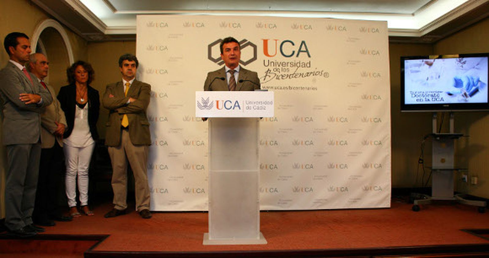 La Universidad de Cádiz (UCA) reorganiza ha reorganizado sus estudios de posgsrado que se impartirán a través de la Escuela de Doctorado de la UCA (Educa) y de la Escuela Internacional de Doctorado de Estudios del Mar (Eidemar) del campus de excelencia internacional del Mar (Ceimar). El rector, Eduardo González Mazo, junto a los vicerrectores de Docencia y Formación, Miguel Ángel Pendón, y de Investigación y Transferencia, Manuel Bethencourt, han dado a conocer esta nueva estructura junto a los directores de Educa y Eidemar, los catedráticos Rosario Hernández Galán y Fidel Echeverría, respectivamente.Además, se han elaborado nuevos reglamentos para elaborar los títulos, adaptados ya a la nueva normativa nacional, y se ha aprobado en Consejo de Gobierno el mapa de programas de doctorado y la oferta de másteres oficiales para el próximo curso.
