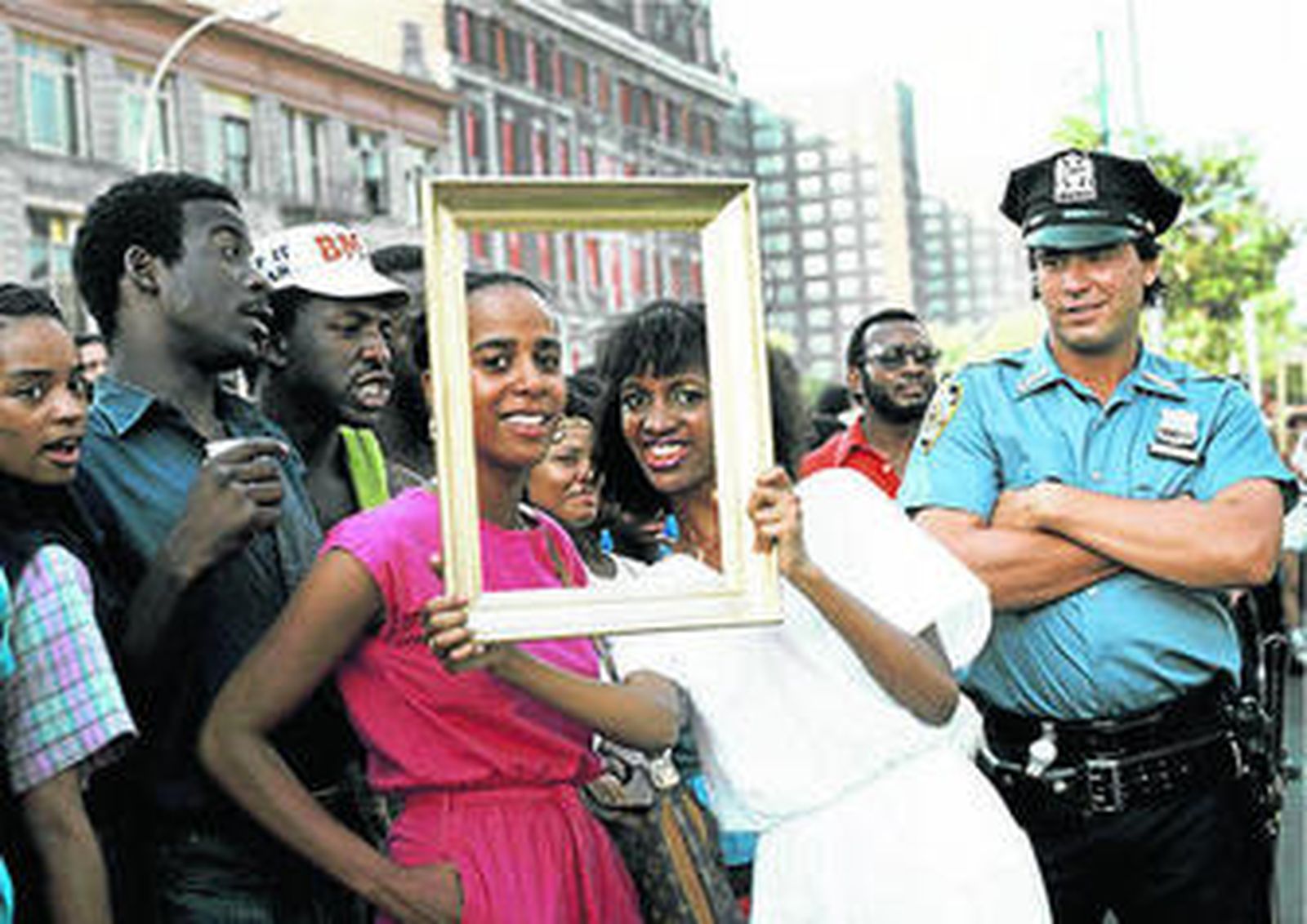 Al comienzo, el visitante encontrará fotografías que documentan la primera irrupción de O'Grady en Nueva York, en los primeros 80. Sin anunciarse como artista ni delimitar los términos de su actuación, se presentó en inauguraciones artísticas en el papel de una especie de miss ataviada con un estrambótico vestido hecho con casi 200 pares de guantes blancos y un látigo adornado con crisantemos. Era su modo de denunciar los obstáculos en las vidas de las mujeres negras y el "apartheid racial del establishment artístico". Más festiva, casi carnavalesca, es otra de sus obras emblemáticas, Art is...: en un desfile del Día Afroamericano en Harlem, actores y bailarines portaban marcos dorados con los que encuadraban a los espectadores, elevando así a la categoría de algo digno de ser contemplado a la gente y a las calles del barrio, hoy gentrificado en muchas zonas pero entonces deprimido.