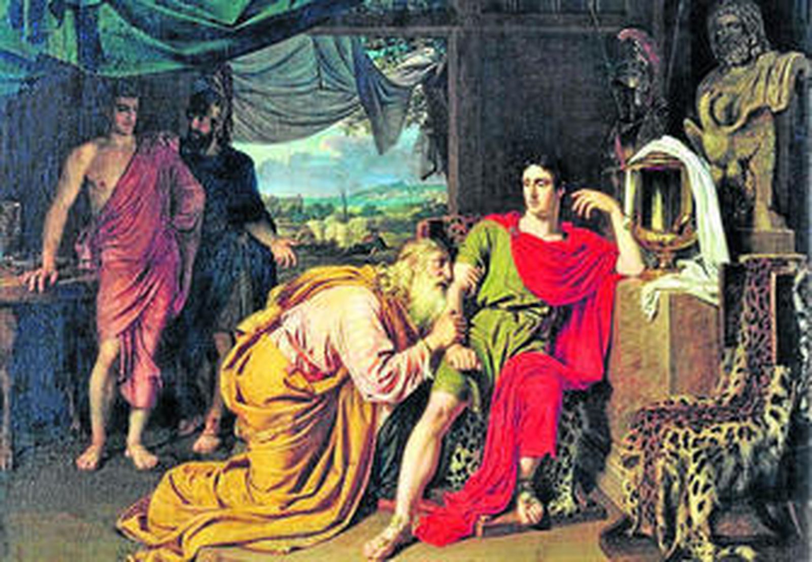 Es en el memorable canto XXIV de la Ilíada, último del poema, donde se nos cuenta el episodio recreado por Malouf. Arrasado de dolor y de ira por la muerte de su amado Patroclo, Aquiles ha dado muerte a Héctor -el hijo predilecto de Príamo, anciano rey de Troya- y ultrajado su cadáver, que espera en vano la sepultura. El monarca entonces, desconsolado, accede a humillarse y suplicar clemencia al ejecutor de su hijo, rogándole que le entregue el cuerpo a cambio de un formidable rescate. En esencia, los hechos son los mismos que narra Homero, con la interpolación de algún personaje -Somax, el carretero convertido en heraldo (Ideo) que acompaña a Príamo en su visita al campamento griego- y, sobre todo, la ampliación de lo que el poema sugiere en pocos versos o no llega a formular explícitamente. Porque el autor no se limita, como ha señalado Alberto Manguel, al mero recuento. Dice Malouf que se propuso contar las "historias no contadas" que subyacen en el texto homérico con idea de profundizar en la razón de ser de toda narrativa: "por qué se cuentan historias y por qué necesitamos escucharlas, cómo las historias se transforman al contarlas". Su novela, de hecho, por más que conozcamos el argumento -del mismo modo que lo conocían los griegos antiguos cuando escuchaban a los aedos o veían representadas las tragedias que les acercaban a los mismos u otros personajes de la tradición mítica-, es un artefacto completamente nuevo, rebosante de vida, fuerza y belleza. El momento clave, como ya se insinúa en la Ilíada, llega con el encuentro entre dos hombres inconsolables que enfrentan sus dolores respectivos y de algún modo comprenden -Aquiles recuerda a su propio padre, Peleo, y Príamo no puede evitar ver en el asesino de su hijo un reflejo de la juventud de este- una simetría consoladora.