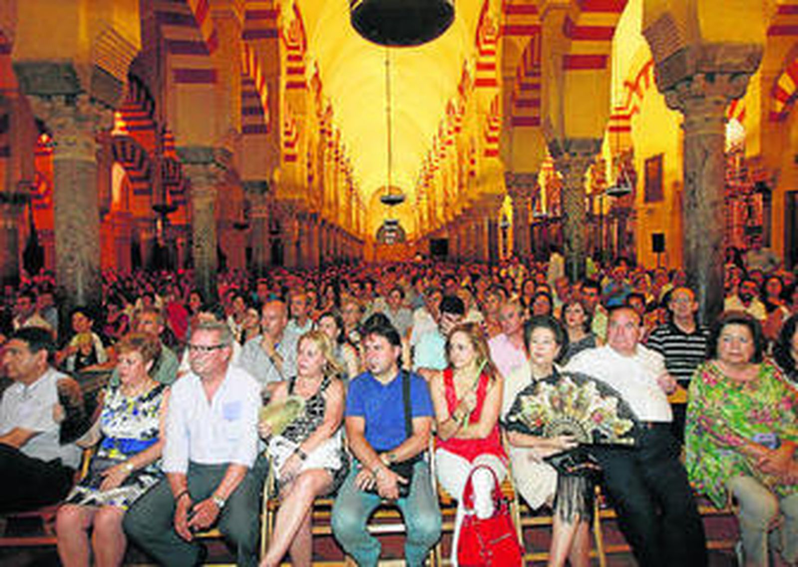 Le esperaba la magna Mezquita-Catedral, un caluroso día de julio, cientos de personas expectantes por apreciar su obra y una fecha especial: la inauguración de la 30ª edición del Festival de la Guitarra. El templo no se libró del perenne bochorno que en estos días vive la ciudad y prueba de ello fueron los numerosos abanicos que se balanceaban hacia un lado y hacia otro para aliviar un poco la temperatura. El calor corporal que desprendían los 2.000 asistentes hizo de las suyas. Y mientras la música, ajena a la temperatura, a los abanicos y a los cuchicheos, paseaba entre el bosque de columnas de mármol de la ampliación de Almanzor de la Mezquita.