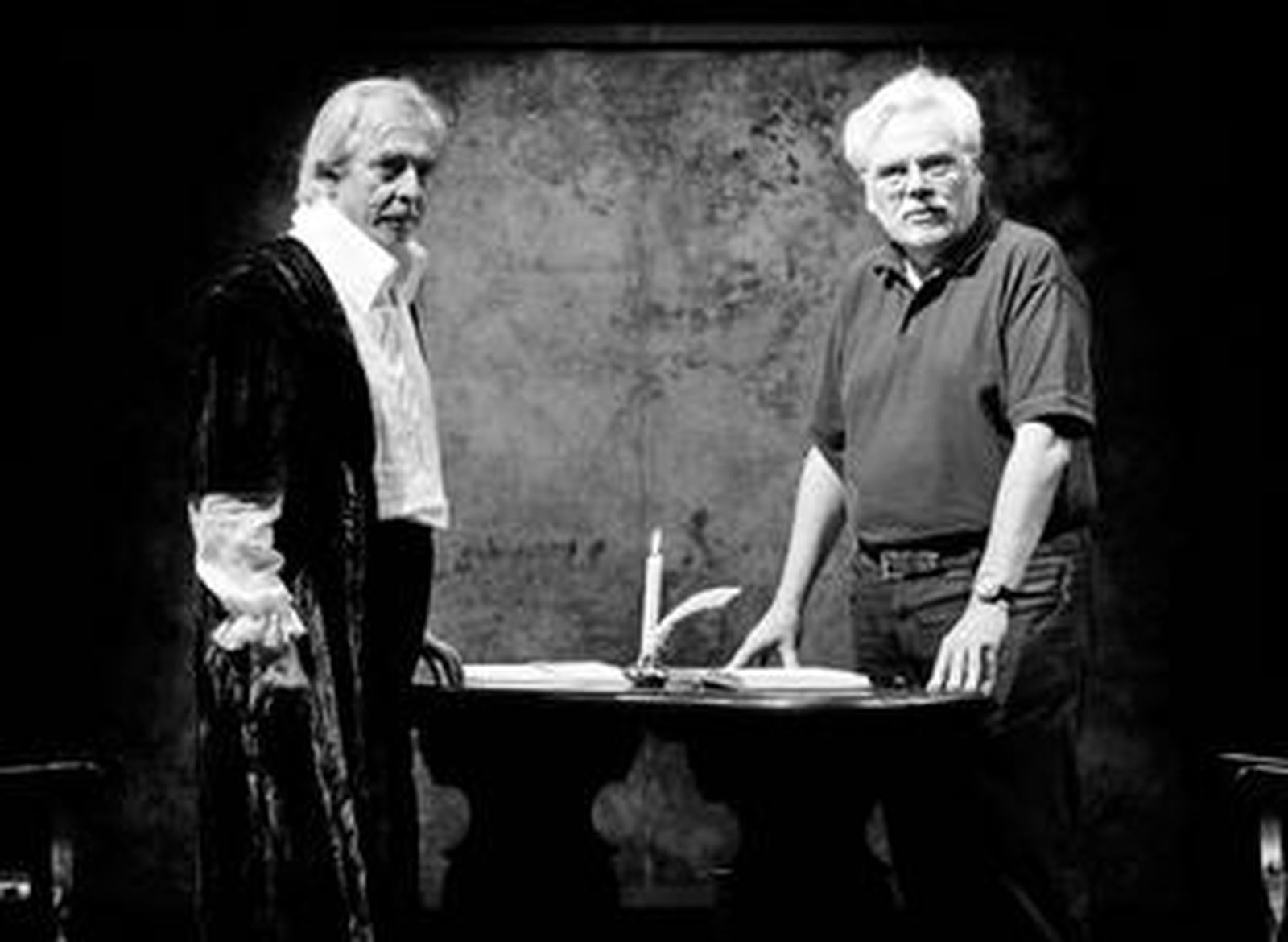 De este punto parte Galileo, el espectáculo teatral que ha reunido a dos talentos del teatro español, el actor Roberto Quintana y el escenógrafo Juan Ruesga, y que tras su pase en la Muestra de Teatro de El Puerto de Santa María (el próximo día 10), se estrenará en Sevilla el 13 en la Casa de la Ciencia del Pabellón de Perú. Planteada como un monólogo de Quintana interrumpido por la entrada en escena de José María Sánchez Rey en el papel del cómplice Cardenal Maculano y la voces en off de Verónica Forqué, Miguel Rellán y Carlos Álvarez Novoa, la obra termina de ensayarse esta semana en el salón de actos del Centro Cívico de Torreblanca, donde el equipo ofrecerá un preestreno el viernes 6, y adonde han trasladado la escenografía de la obra, precisa y estilizada.