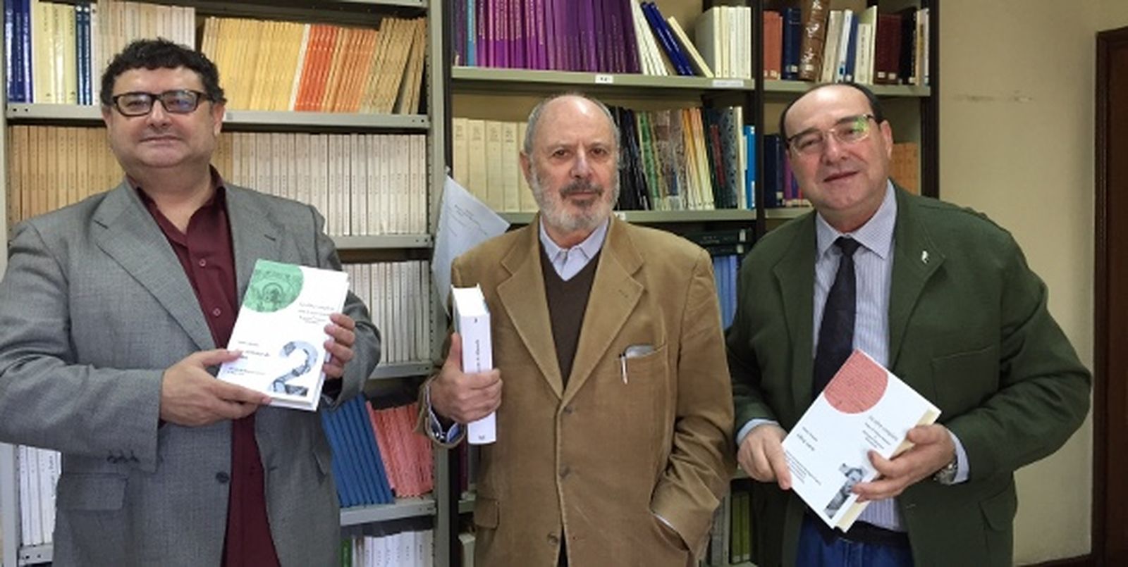 José Manuel Camacho, director de la Cátedra Cernuda, Pedro Piñero, catedrático de Literatura y Manuel García, catedrático de Historia, con la obra sobre Mateo Alemán.