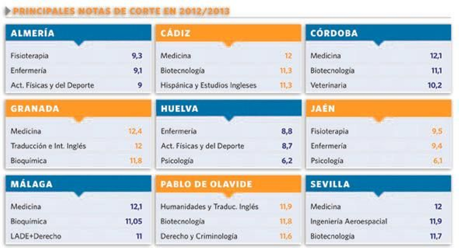 Las notas más elevadas que se pidieron el curso pasado: