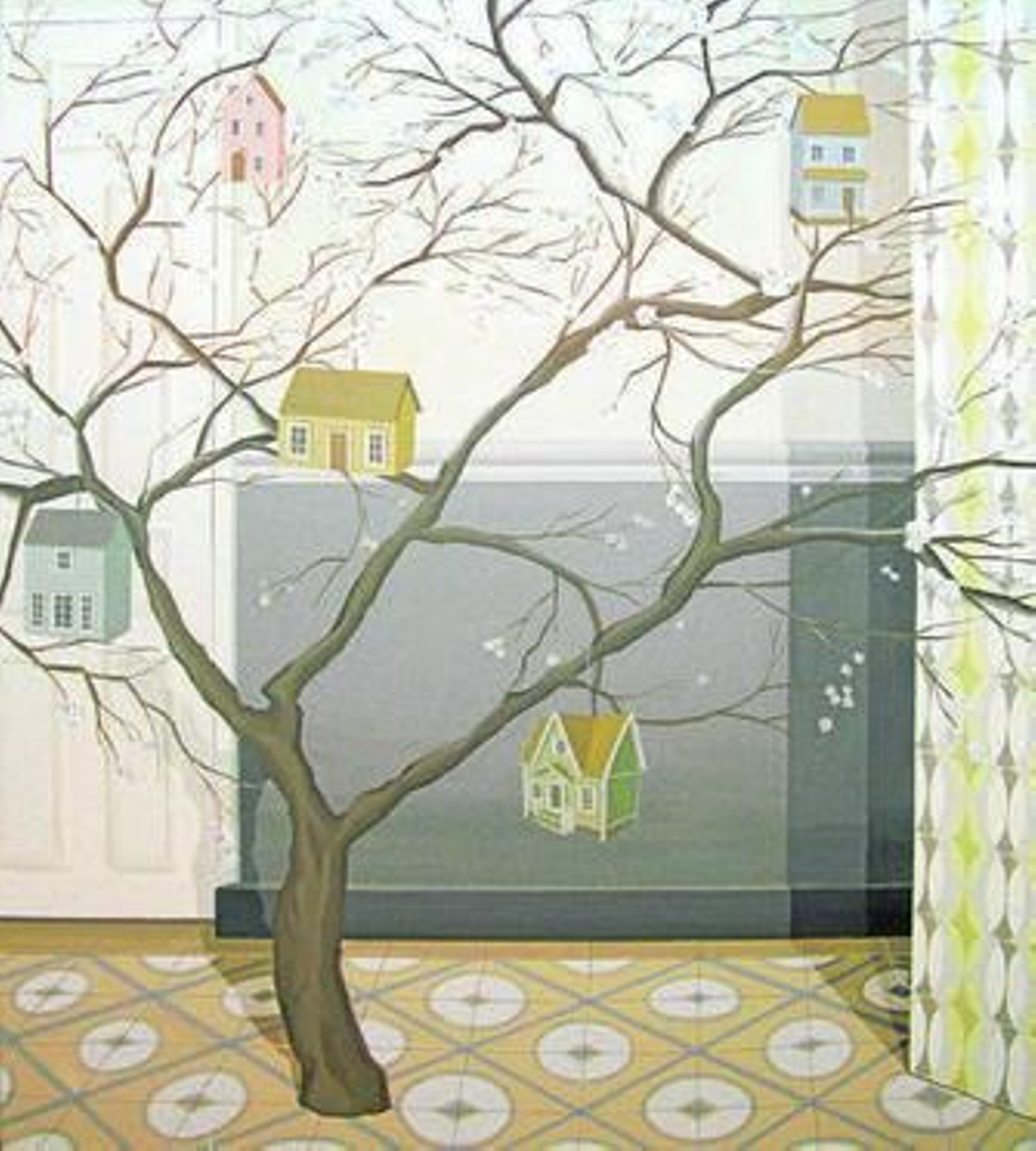 Gloria Martín (Alcalá de Guadaíra, 1980), finalmente, parece resumir mucho de lo expuesto con un trabajo cuidado formalmente y con evidente alcance poético. La casa que guarda en su interior un árbol parece remitir al sentido más hondo de habitar que es crecer con el entorno: convivir con los propios pensamientos y también con cuanto puede desmentirlos, obligándonos a ensanchar ideas y ampliar la sensibilidad. Así, la casa deja de ser refugio y pierde por tanto su posible carácter excluyente. Más bien se convierte en una fuerza generadora de espacios, impulso a tender relaciones y anudar vínculos con los demás y con nuestro entorno. Así la casa genera otras casas, esto es, fomenta casi una constelación de nuevos espacios de encuentro y acogida. No sé si es la intención de la autora, pero su Árbol de la vida doméstica me parece que permite pensar todo eso.