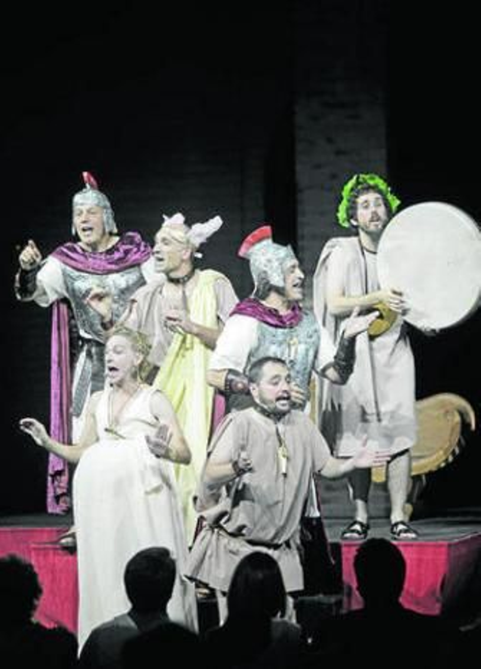 Roca no ha escatimado recursos de la cultura andaluza para adornar este vodevil y sorprende desde la primera entrada, cuando la compañía en pleno sale a escena formando una chirigota, pitos y cuartetos gaditanos para dar comienzo a una comedia muy sevillana, pero que si sale fuera de nuestra ciudad puede adaptarse con cierta facilidad a cualquier otra. Luego, con la música en directo del hombre orquesta David Ruiz se suceden las peripecias del esclavo Sosias que se encuentra con el mismísimo dios Mercurio transformado en él mismo, que a fuerza de palos acabará haciéndolo dudar de su propia existencia. Fenomenal Juanfra Juárez que crece en cada trabajo que interpreta. En el mismo estado de gracia se encuentra Belén Lario, que saca provecho a su cazallera voz y consigue dulcificarla a medida. Llena de recursos, está divertida y acertadísima, provocando muchos de los momentos más ocurrentes de la comedia. No por ello desmerecen sus compañeros, buen grupo de sólidos actores, Alejandro Peña, Joserra Leza y Javier Castro, en su faceta rapera.