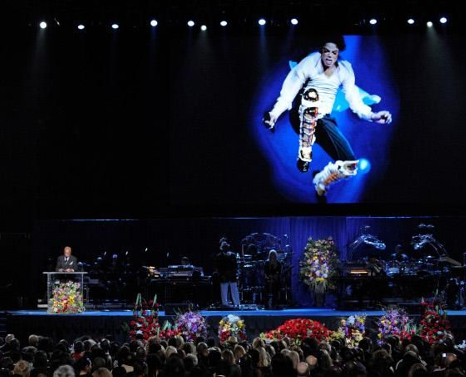 El evento dirigido por el coreógrafo Kenny Ortega, que participó en la película High School Musical, quien trabajaba con Jackson para preparar sus conciertos estivales en Londres, se celebró con la presencia del cuerpo del difunto cantante en un ataúd dorado que fue trasladado para la ocasión desde el cercano cementerio Forest Lawn de Hollywood.