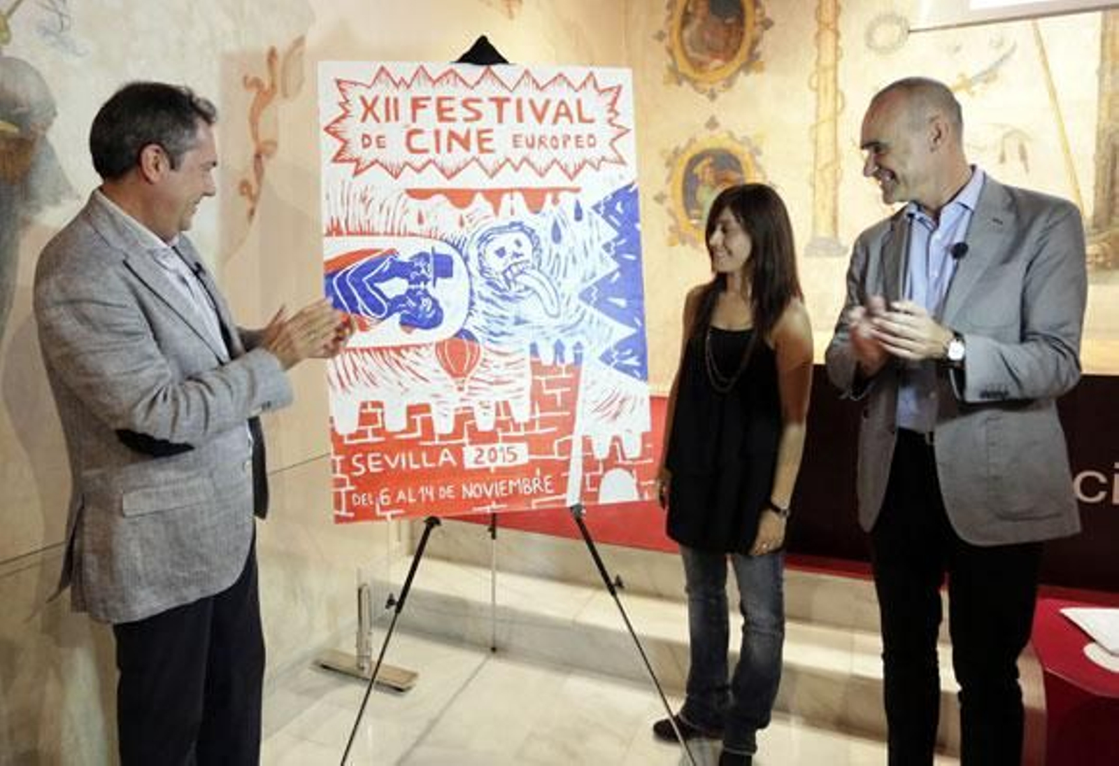La de este miércoles resultó ser una jornada particularmente intensa para el Festival de Cine Europeo de Sevilla, que se celebrará entre el 6 y el 14 del próximo mes de noviembre. Por la mañana, el delegado de Hábitat Urbano, Cultura y Turismo del Ayuntamiento, Antonio Muñoz; la directora general de Cultura del Consistorio, Isabel Ojeda, y el director del certamen, José Luis Cienfuegos, presentaron un avance de los títulos que podrán verse en la distintas secciones del encuentro. Ya por la tarde, fue el alcalde de la ciudad, Juan Espadas, quien asistió a la presentación del cartel de la XII edición de la competición, una obra de la pintora hispalense Cristina Lama.