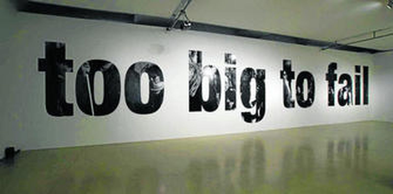 La muestra se completa con un gran mural. En él, el célebre aforismo de Proudhon ("Property is theft"; "la propiedad es un robo" en español) se funde con el logotipo de una entidad financiera española. Es una variante de otro síntoma subrayado por Ressler en otro gran mural: Too big to fail, demasiado grande para fracasar. Toda una garantía de impunidad para la gran empresa.