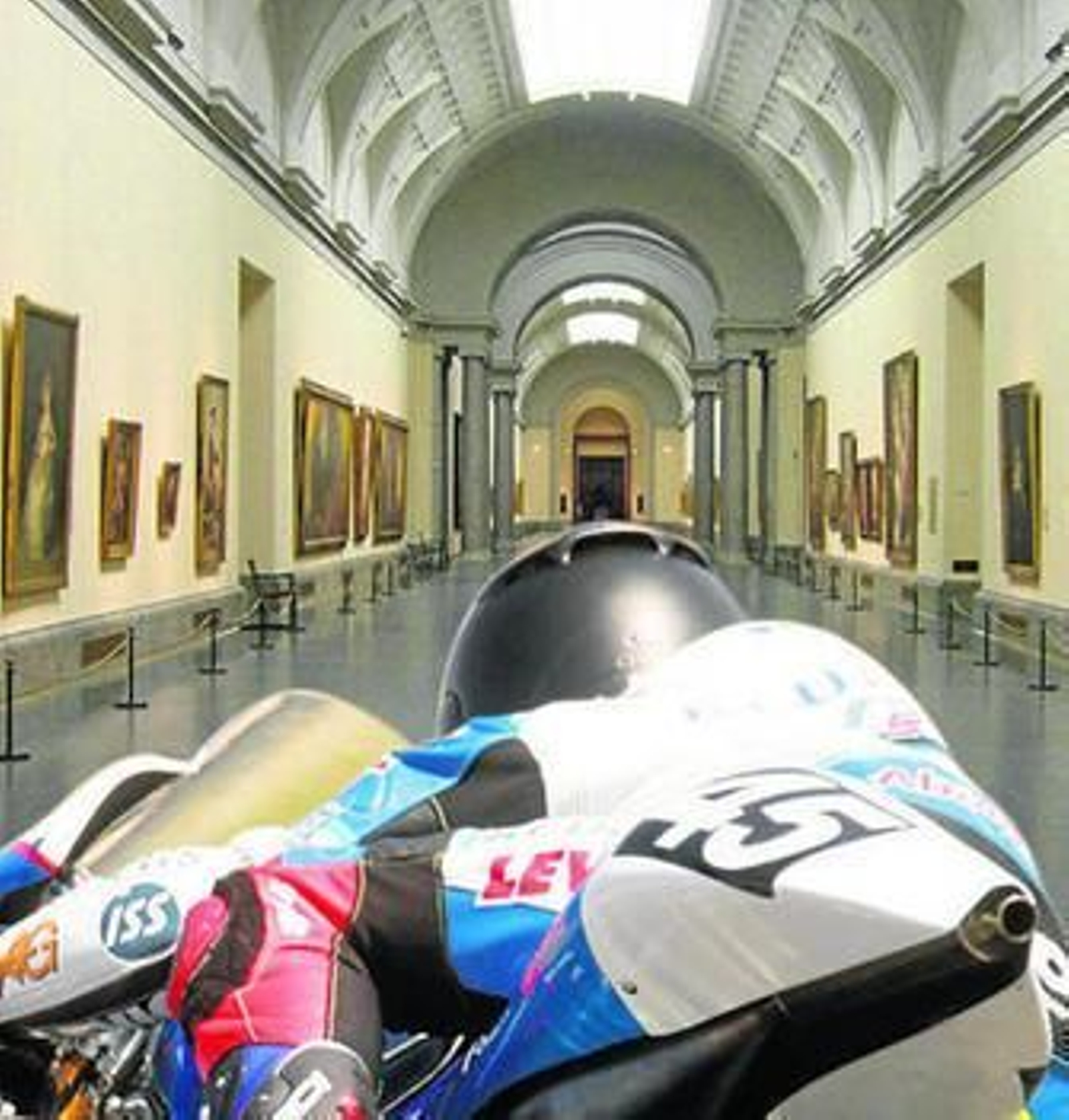 Claro que no siempre las cosas son así. No son pocos los que acuden al museo con el tiempo justo para poder decir que lo visitaron. Lo recorren como una moto de gran cilindrada y ese es el sarcasmo de Prado GP, un vídeo en el que grandes motos recorren las galerías del Prado, desde El sueño del patricio hasta Las Meninas. Ante el cuadro de Velázquez, los esforzados jinetes caen, como si allí experimentaran su personal camino de Damasco. El vídeo se presta a otras lecturas: sugiere tal vez cómo cada día se parecen más las estrategias de agentes de la industria cultural en principio muy distintos entre sí. Si el éxito comercial de las competiciones deportivas se mide por los niveles de audiencia, análogo índice de mercado buscan esos museos que, como el Prado, ponen al mismo nivel Los fusilamientos del 3 de mayo de Goya y La rendición de Granada o Doña Juana la Loca de Francisco Pradilla. Todo parece valer para que aumente el número de visitantes.