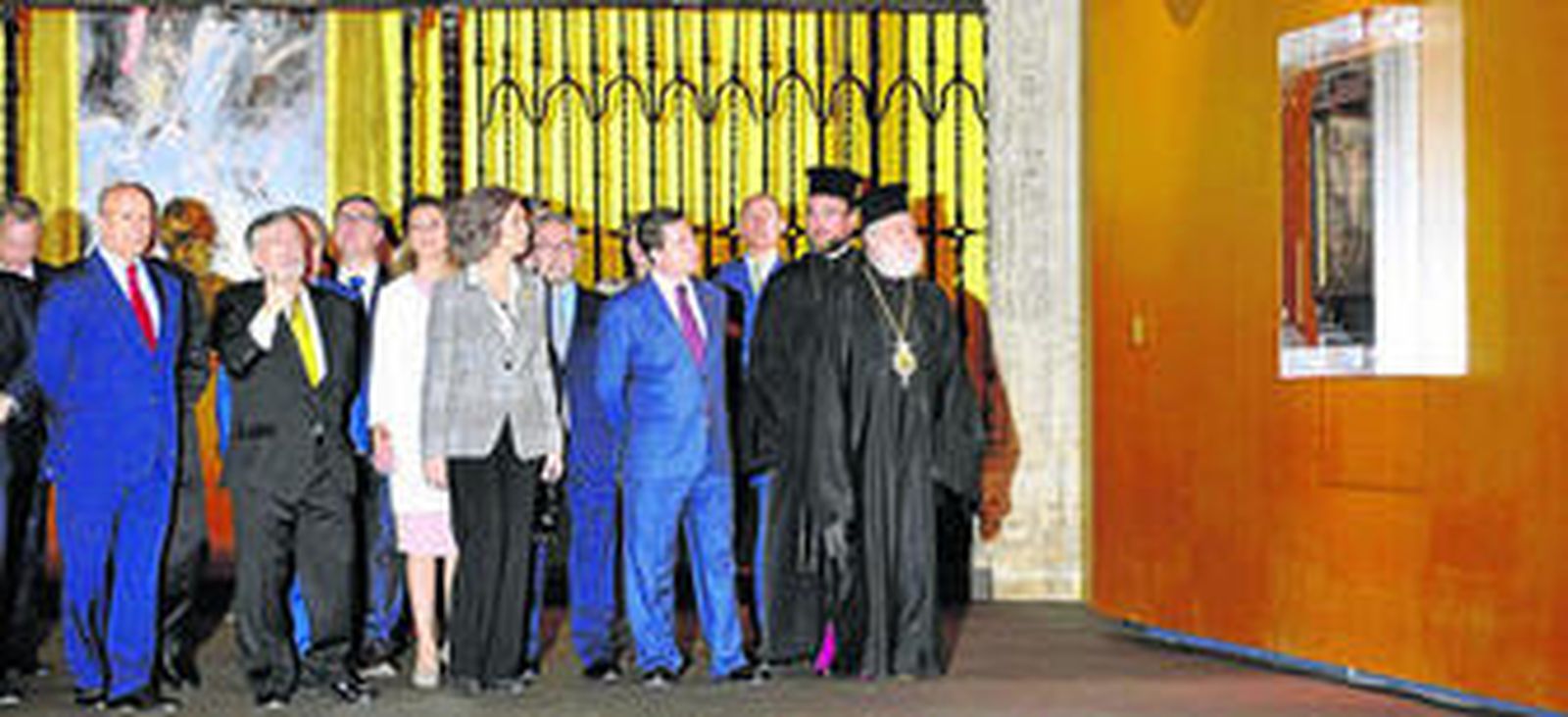 Doña Sofía, que conversó en griego con el obispo de Syros, recibió como regalo de sus paisanos una réplica de esta Dormición, además de otro presente del arzobispo de Toledo, Braulio Rodríguez. También mostró interés la Reina en el cuadro Santiago el Mayor, de peregrino, que forma parte de la colección permanente del Museo de Santa Cruz.