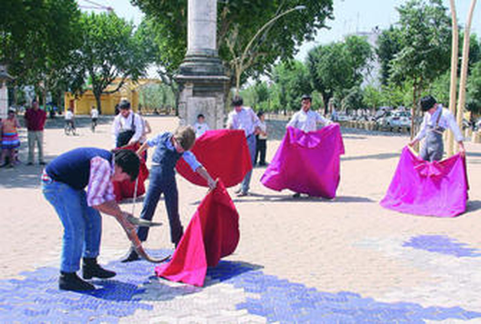 "Aquí -dice Antonio, albañil jubilado-, yo también soñé con ser torero y con un capotillo jugué con otros niños a torear". Se acercan más vecinos para disfrutar del toreo de salón y un par de niñas sujetan los capotes y una señora, más allá, comprueba el peso de una muleta y dice: "¡Vaya si pesa! ¿Y esto lo movéis delante de un bicho como si ná?". Y los niños continúan dibujando naturales, mientras sueñan con debutar en la Maestranza. El aficionado Fernando Vázquez, artífice de la idea, se muestra satisfecho: "Es la primera piedra para demostrar que todavía se juega al toro en Sevilla. Al final, como ha visto, varios niños de los vecinos se han lanzado también a jugar al toro. Los próximos fines de semana vendrán más chavales".