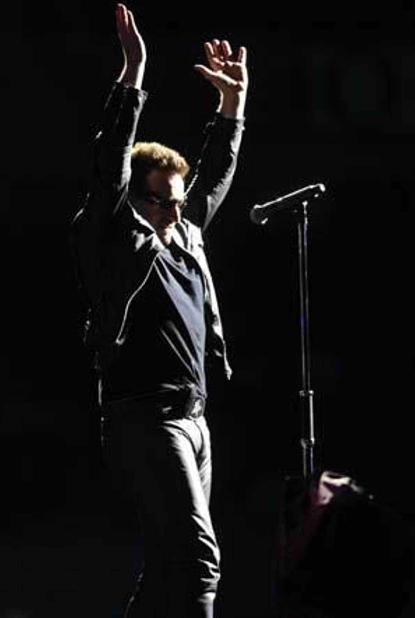 En In a Little While se ha permitido un gesto clásico de estrella del rock al subir al escenario a una joven al borde del desmayo para compartir la parte más pausada del recital, que ha remontado el vuelo con Vertigo, I'm Going Crazy Tonight y City of Blinding Lights, durante la que la orgía de luz y color ha alcanzado su clímax. El inevitable recuerdo solidario ha sido en esta ocasión para Amnistía Internacional y en concreto para la presa birmana Aung Suu Kyi, a la que ha dedicado un emotivo Walk On.