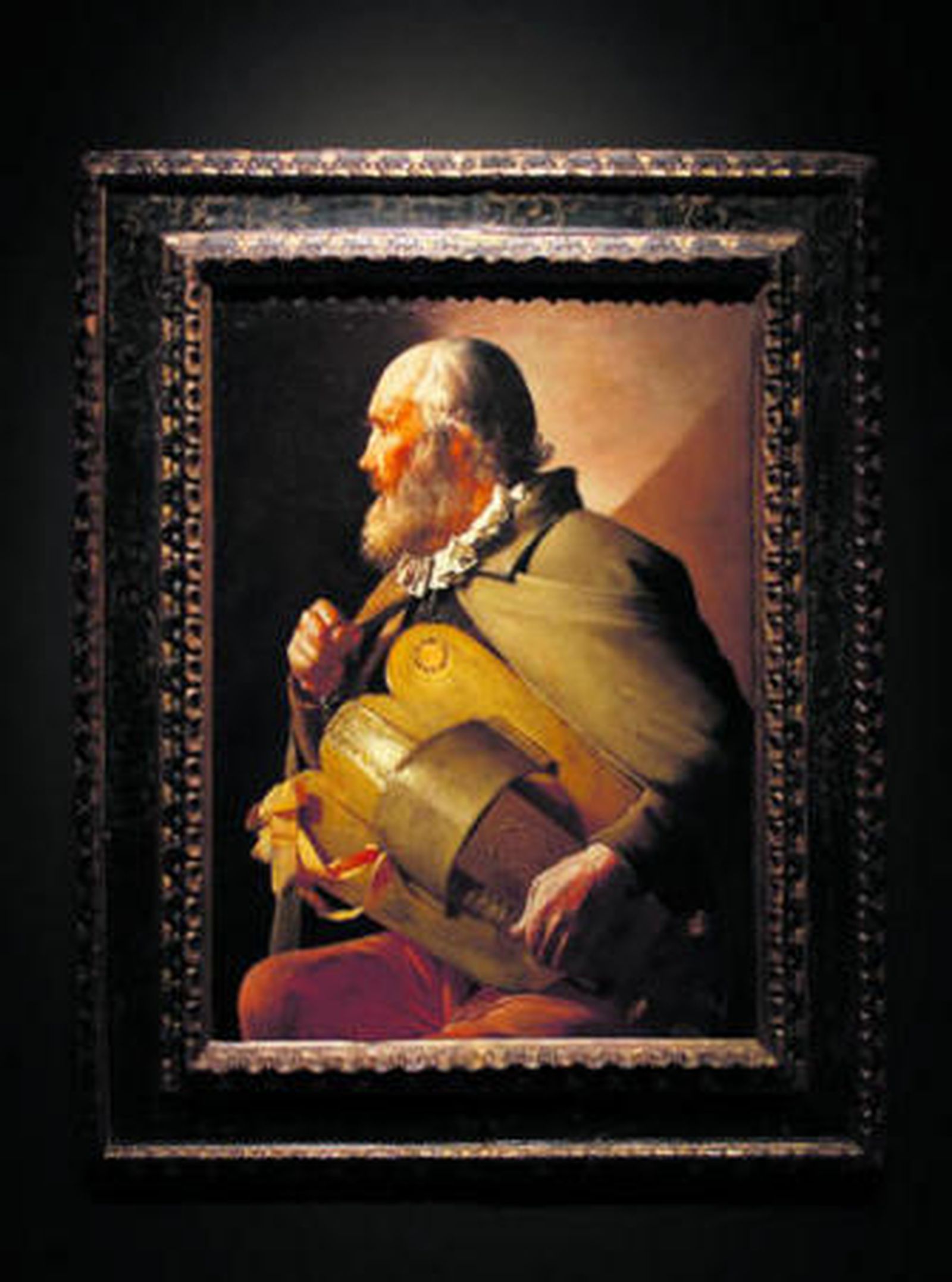 La muestra se abre con su pintura realista, la que realizó en la segunda década del XVII, cuando realizó el Apostolado de Albi y retrató a los mendigos harapientos de Comedores de guisantes (Gemaldegalerie de Berlín) y a los instrumentistas pendencieros y miserables de Riña de músicos (Los Ángeles). A propósito de este cuadro, dice el comisario Andrés Úbeda: "Como todo en su pintura, esta representación de músicos a la gresca es muy especial. No muestra un concierto elegante ni un coro de ángeles sino a intérpretes callejeros con instrumentos populares como la zanfoña. Es una narración muy compleja porque cada uno de los cinco integrantes de la pintura significa algo: dos músicos, uno de ellos ciego y con un cuchillo en la mano, se enzarzan en una riña azuzados por otros dos testigos. La mujer que completa la escena y hace de lazarillo, con su rostro aterrado, nos pone sobre la pista de la verdadera historia: el músico que ve exprime un limón ante los ojos del ciego, dando a entender que es un falso ciego tramposo, y que lo que está en juego es su mendicidad como forma de vida".