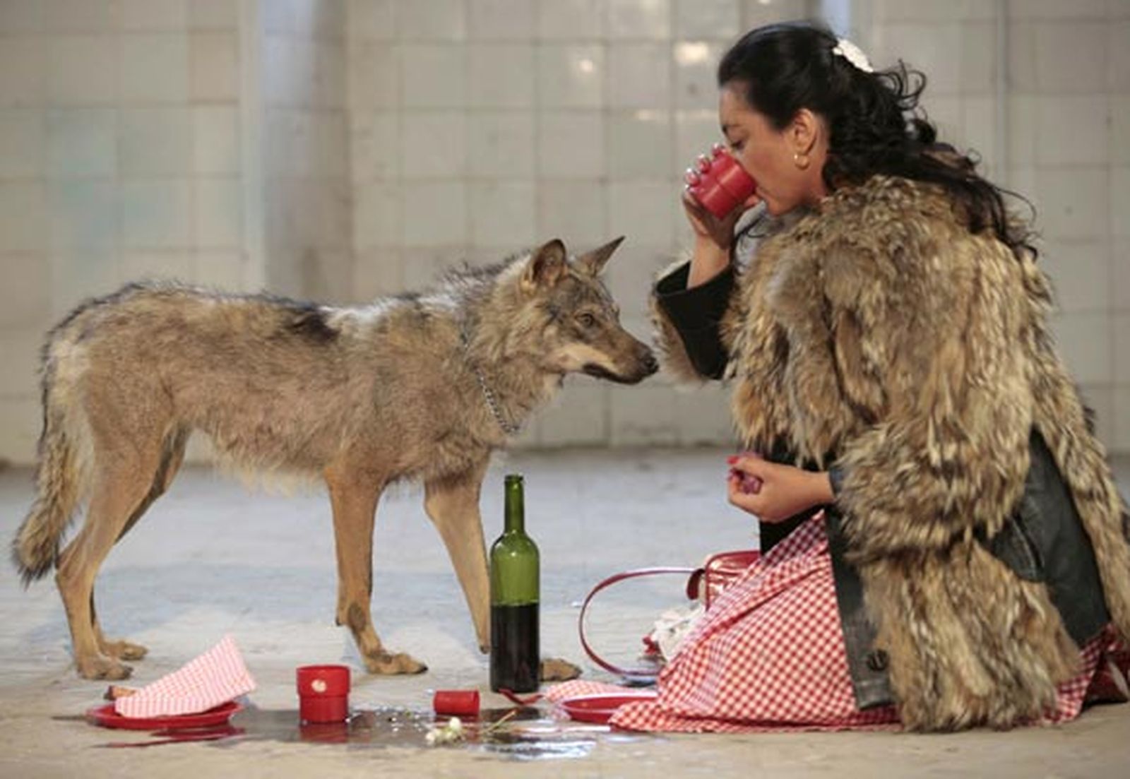 A través de piezas como el vídeo She wolf, de Pilar Albarracín, que propone un singular viaje al territorio de Caperucita Roja en la que las personas interactúan con lobos, o mediante litografías como Hansel & B-rästel, de Michaël Woolwort, Todos caníbales juega también con la bipolaridad de fábulas y cuentos infantiles. Cuentos y leyendas en las que los que personajes que han pasado al imaginario colectivo a través de relatos que han rodado de generación en generación morían en las fauces de otros seres o que escapaban de los estómagos de distintos villanos.