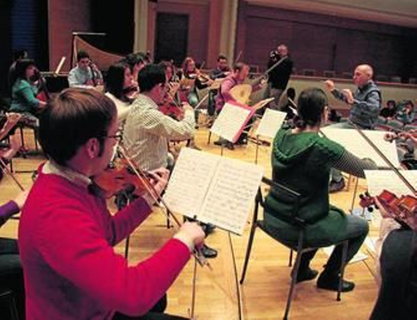 "El violonchelo se toca ahora de forma totalmente distinta a como se hacía en el Barroco y Onofri ha trabajado muy bien con nosotros", explicaba otro estudiante rodeado por una decena de compañeros que enfundaban en sus estuches violas, violines, chelos y tiorbas.