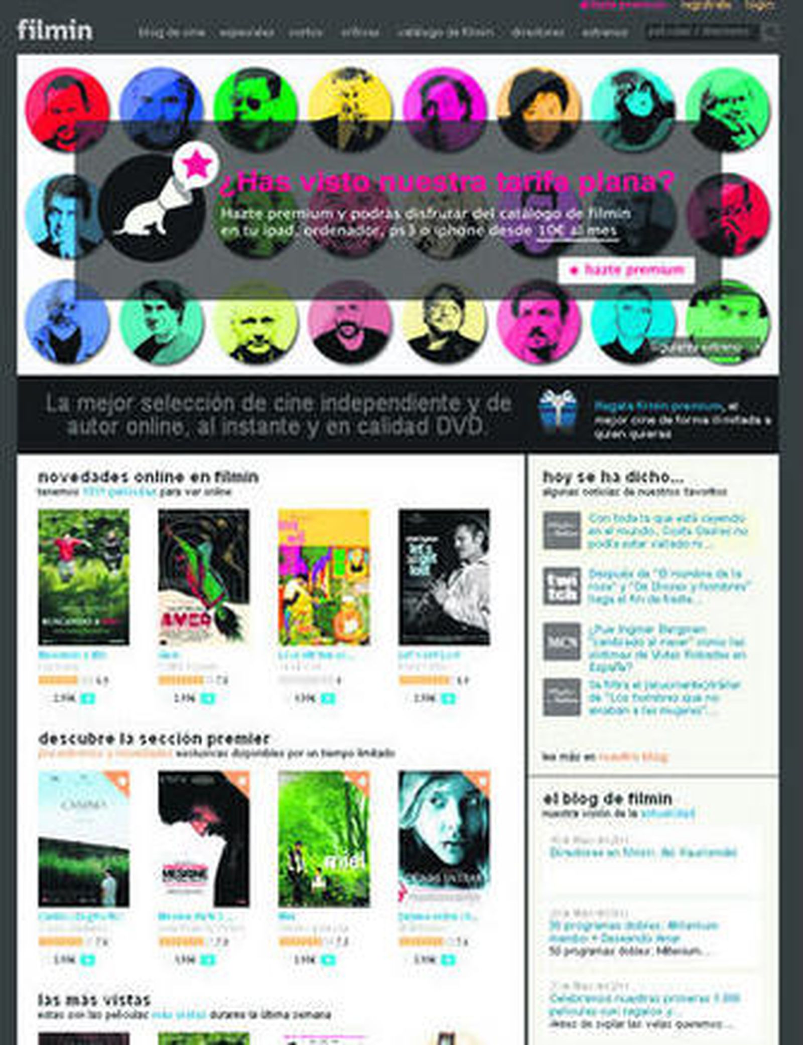 Juan Carlos Tous, fundador del sello Cameo y más tarde uno de los responsables de Filmin, explica que fue "la experiencia que estaba viviendo la industria musical en 2005" la que les animó a adentrarse en la red. "Estábamos convencidos que pasaría algo similar en el cine y que internet sería el futuro de la distribución", cuenta sobre los orígenes de una web que ha implicado a distribuidores y productoras como Alta Films, Golem, El Deseo, Vértigo o Wanda. Tardaron en consolidarse como alternativa, pero fue por una razón ajena a ellos. "Filmin nació en 2007 y hasta junio de 2010, fecha del lanzamiento de la versión definitiva de filmin.com, tuvimos un camino difícil lleno de fracasos tecnológicos. Hubo que deshacer dos veces el proyecto por incompatibilidades técnicas. En un principio queríamos desarrollar una tecnología propia, pero finalmente acertamos con la idea de considerar el outsourcing tecnológico", apunta.