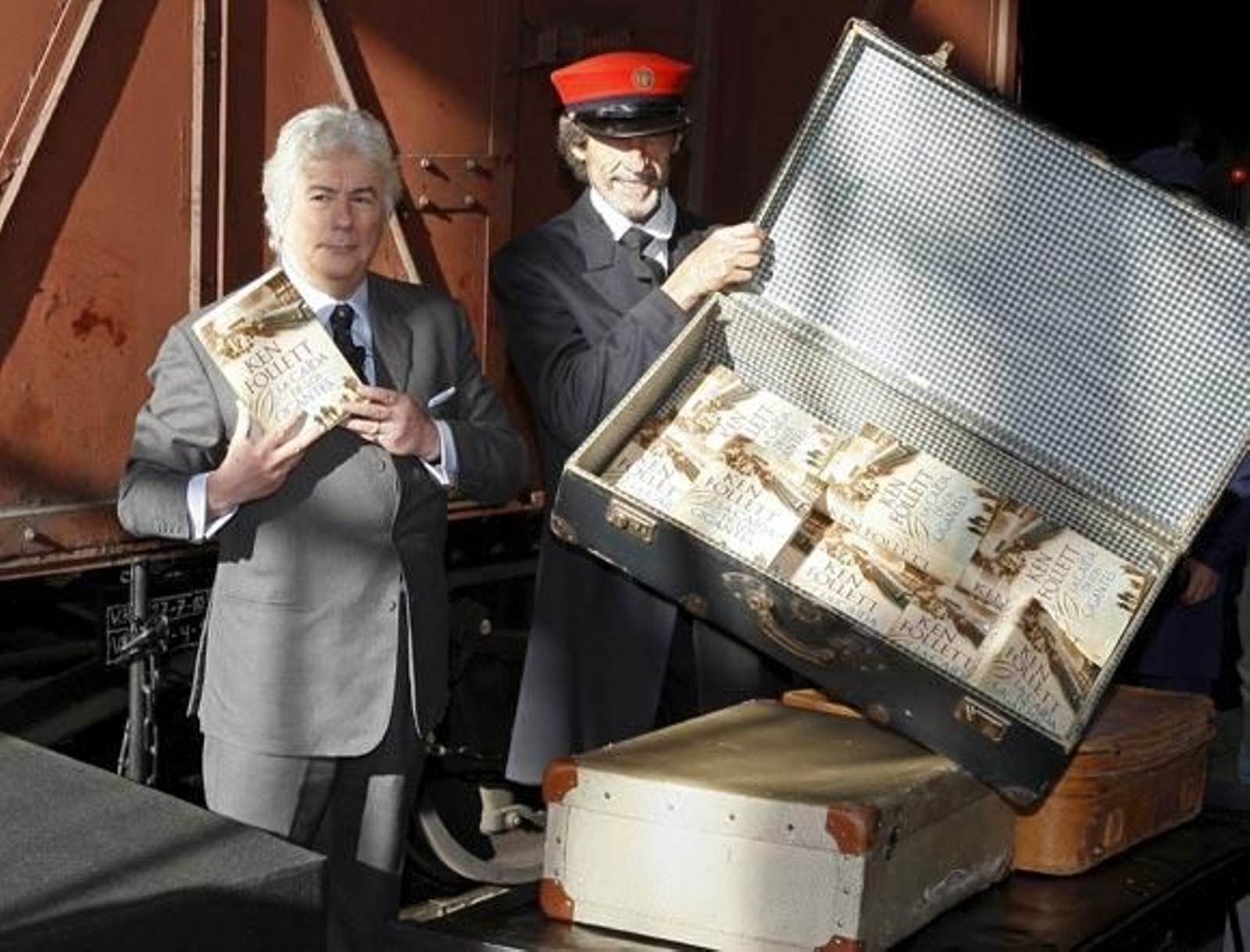 La editorial Plaza & Janés ha querido emular la portada de La caída de los gigantes, en la que aparece una vieja estación de tren, para la presentación en España de la obra. Durante la misma, Ken Follett (Cardiff, Gales, 1949) ha aparecido en medio de una gran nube de vapor producida por un antiguo tren, construido en Bilbao en 1928, que entró en la vieja estación de Atocha, reconvertida en la actualidad en Museo del Ferrocarril, al toque de silbato del jefe de estación. Dentro del viejo vagón, cientos de ejemplares de la última obra de Follett aguardaban, confundidos entre maletas antiguas, a ser leídos por los seguidores con los que el escritor cuenta en todo el mundo, como atestiguan los cien millones de ejemplares de sus obras vendidas.