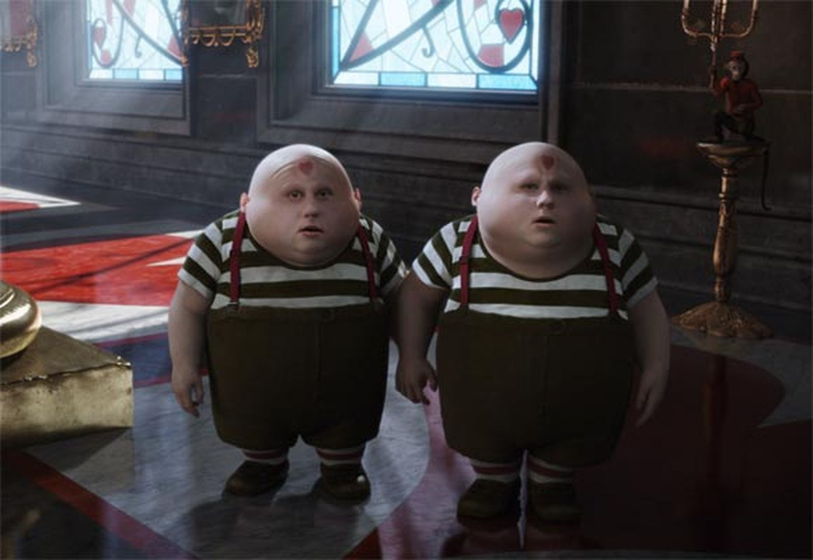 Tweedledee Tweedledum (Matt Lucas) son dos mellizos regordetes que están siempre discutiendo entre ellos y que utilizan un lenguaje muy particular que casi nadie entiende. Cuando Alicia llega al Submundo, se fija en los mellizos para que la guíen. Inocentes e infantiles, adorables y encantadores, son buenos chicos pero no son de gran ayuda debido a su forma de hablar, extraña y misteriosa. “Los imagino como los típicos niños traviesos victorianos, con las manos siempre metidas en el bote de la miel”, dice Lucas, el cómico y actor británico que interpreta a ambos. “Así que les he hecho bastante infantiles, lo que no me cuesta demasiado porque yo mismo soy un niño grande”.