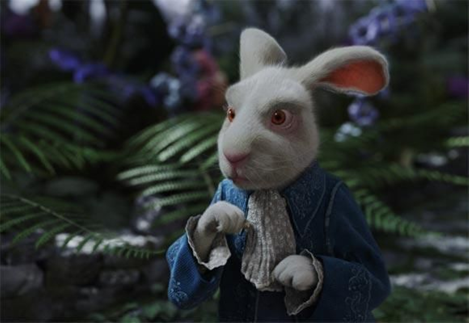 Tmctwisp, el Conejo Blanco (voz de Michael Sheen en la v. o.) siempre llega tarde, siempre está corriendo y siempre está apurado. Le han encargado que encuentre a Alicia y que la traiga al Submundo para que pueda cumplir con su destino. Por eso se presenta en la merienda en el jardín, para atraerla a la madriguera del conejo. “Es un personaje entrañable”, dice Sheen, “pero también es muy quisquilloso y bastante severo con Alicia. Siempre está alerta, es muy nervioso, como si le faltase siempre tiempo. El tiempo es muy importante para él, pero acude raudo y veloz cuando se le llama”.