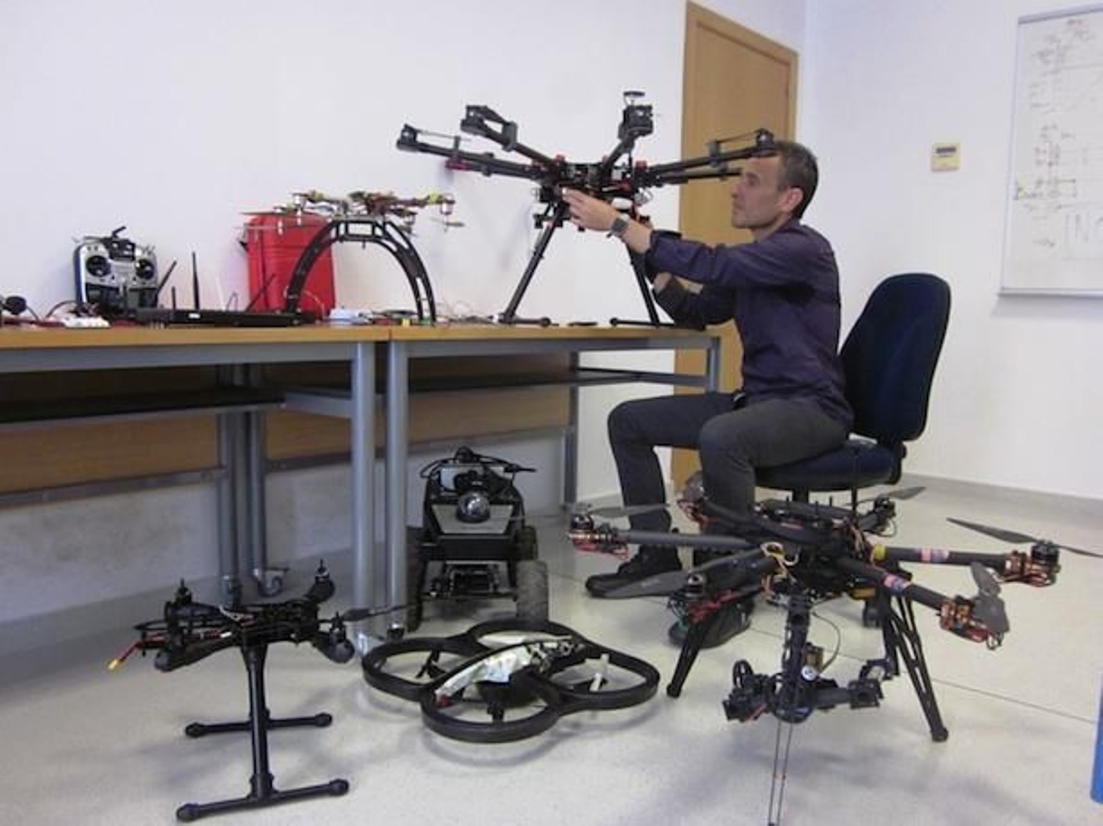 El ingeniero informático José Carlos Moreno Úbeda, junto a diversos tipos de dron.