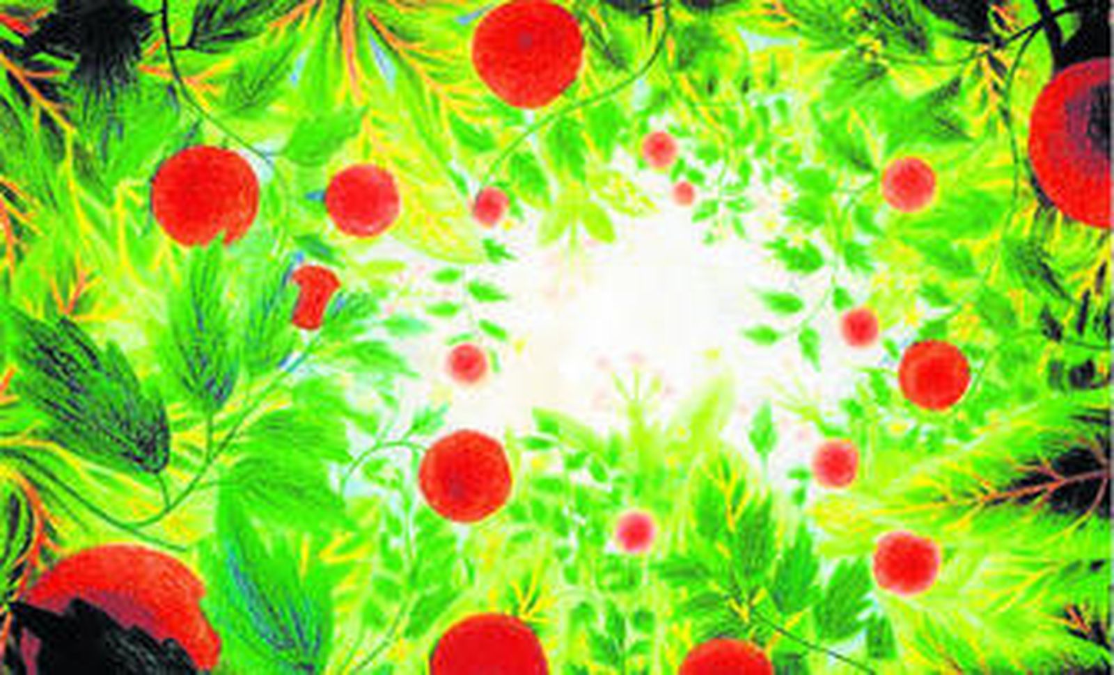 Pero la prudente visión y viva sensibilidad de los magos estaba arraigada desde antiguo en otras civilizaciones. Federico Guzmán pudo apreciarla en venerables taitas como Don Antonio Jacanamijoy, para quien las plantas pueden atraer a una persona a la que curarán de una dolencia o apartarán del infortunio. De este modo, la naturaleza aparece sobre todo como fuerza, cuyos frutos mantienen y fortalecen el cuerpo, impulsándolo al mismo tiempo a soñar e imaginar. Desde esta perspectiva, la aventura de los Simpson adquiría otro significado: ¿no cabía imaginar una planta que simbolizara por una parte el alimento que proporciona el tomate y por otra el estímulo que puede dispensar el tabaco? Procedentes ambas especies solanáceas de América, el injerto aludía también a la sabiduría de las antiguas culturas colombianas que, como ocurre en el arte, no separan conocimiento y fantasía, inteligencia y cuerpo.