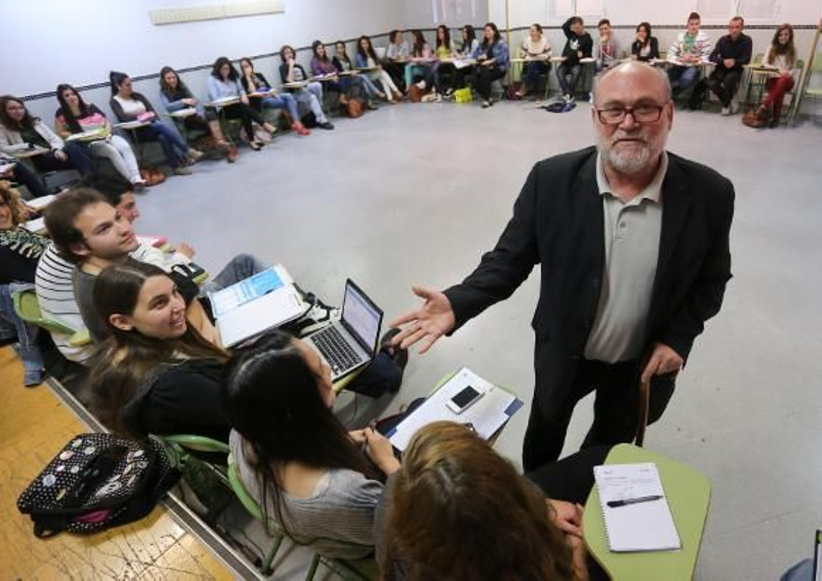 “Nos sentamos en círculo para que la reflexión y el diálogo se hagan en un plano de igualdad,”, explica Paula, estudiante de primero de Pedagogía de la Universidad de Málaga. “Hemos eliminado la tarima del profesor”, aclara. Por eso el catedrático de Didáctica y Organización Escolar Miguel López Melero utiliza una silla cualquiera del círculo y se dirige a los alumnos por su nombre. “¡Si llevo con ellos desde febrero cómo no voy a saber cómo se llaman!, dice sorprendido por la pregunta a pesar de que imparte clase cerca de 200 estudiantes de tres grupos de primero de Pedagogía, Infantil y Primaria. Reconoce que ha elegido titulaciones diferentes para evitar la repetición de contenidos y lamenta no disponer de más horas para la docencia.