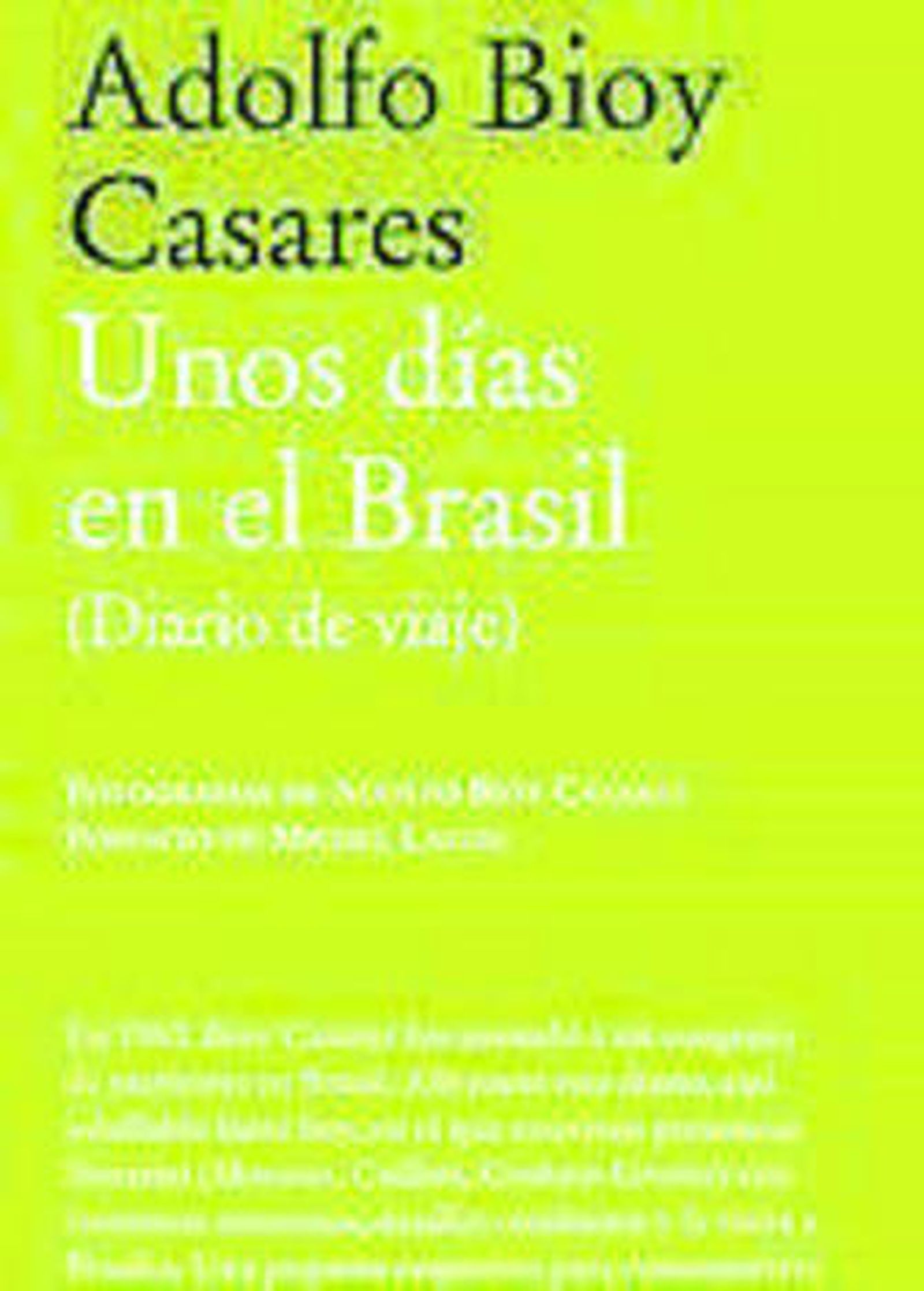 De fondo está el nuevo Brasil, el ambicioso sueño de Brasilia, que Bioy visita en plena construcción, y que le parece "digna del peor (o mejor, tanto da) Le Corbusier". Al final del volumen se adjuntan fotos del propio Bioy Casares, donde a la pureza de líneas de Niemeyer se añade la desolación y el asombro despeinado de los indios. También se adjunta un conmovido Postfacio de Michel Lafon, catedrático de Literatura argentina en Grenoble, y editor en Francia de sus obras completas. En cualquier caso, tras las lectura de estas páginas, queda claro que Bioy Casares fue la parte movediza, elegante y seductora de un único cuerpo rioplatense; aquél que formaron, en numerosos volúmenes y a lo largo de una dilatada amistad, él mismo y Jorge Luis Borges. Así, podemos decir que Unos días en el Brasil es un libro cordial, incisivo, alegre, agravado a veces por la melancolía de la mujer ausente. Esta mujer no es otra que la brasileña Ophelia, a la que conoció diez años atrás en un barco de camino a Europa. Ya en Río, sin embargo, la búsqueda infructuosa de Opheliña se cruza con el deslumbramiento de otras damas, y el impreciso temor a saberse definitivamente viejo. "Uno sabe que está viejo -escribe Bioy- cuando aparecen lunares en las manos y nota que se volvió invisible para las mujeres". De este modo, el argentino repetía, quizá sin saberlo, el desolado hallazgo de Ortega y Gasset ante el incesante tráfico femenino de la Gran Vía: "Es que no nos ven", concluyó, no sin dolor, el filósofo madrileño.