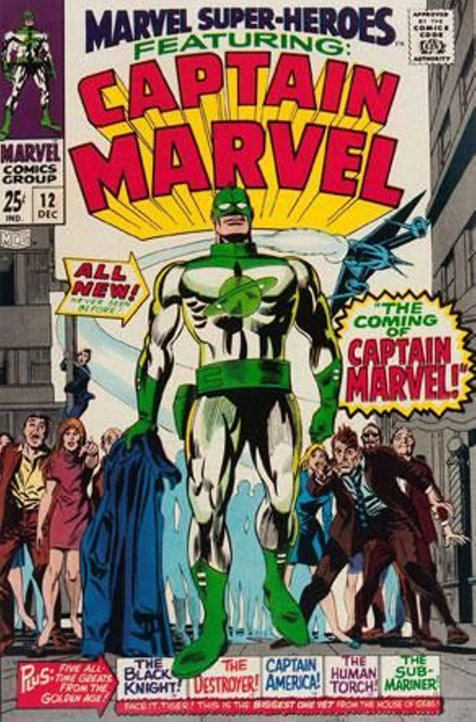 El Capitán Marvel de Stan Lee era un oficial Kree destinado en la Tierra que acababa desarrollando simpatía por los terrícolas y se declaraba en rebeldía contra los suyos. Su debut ocurrió en el número 12 de Marvel Super-Heroes, a finales de 1967. Tuvo una segunda aparición en dicha cabecera y pronto obtuvo una serie propia, lanzada con fecha de cubierta de mayo de 1968, el año de la fenomenal expansión del catálogo de Marvel. Lee escribió solo el primer episodio de Marvel Super-Heroes, y su labor fue continuada brevemente por Roy Thomas, siempre con Gene Colan en el tablero de dibujo. A estos, les siguieron Arnold Drake y Don Heck. Por aquellos tiempos, el nuevo Capitán Marvel no lucía el traje rojo y azul que lo haría famoso, sino el uniforme blanquiverde de los Kree, y sus aventuras tardarían bastante en despertar interés (no lo harían hasta la llegada de Jim Starlin, pero esa es otra historia). Llegada recopila los dos Marvel Super-Heroes y los primeros 11 números de Captain Marvel, el punto de partida del héroe cósmico por excelencia de la Marvel de los 70.