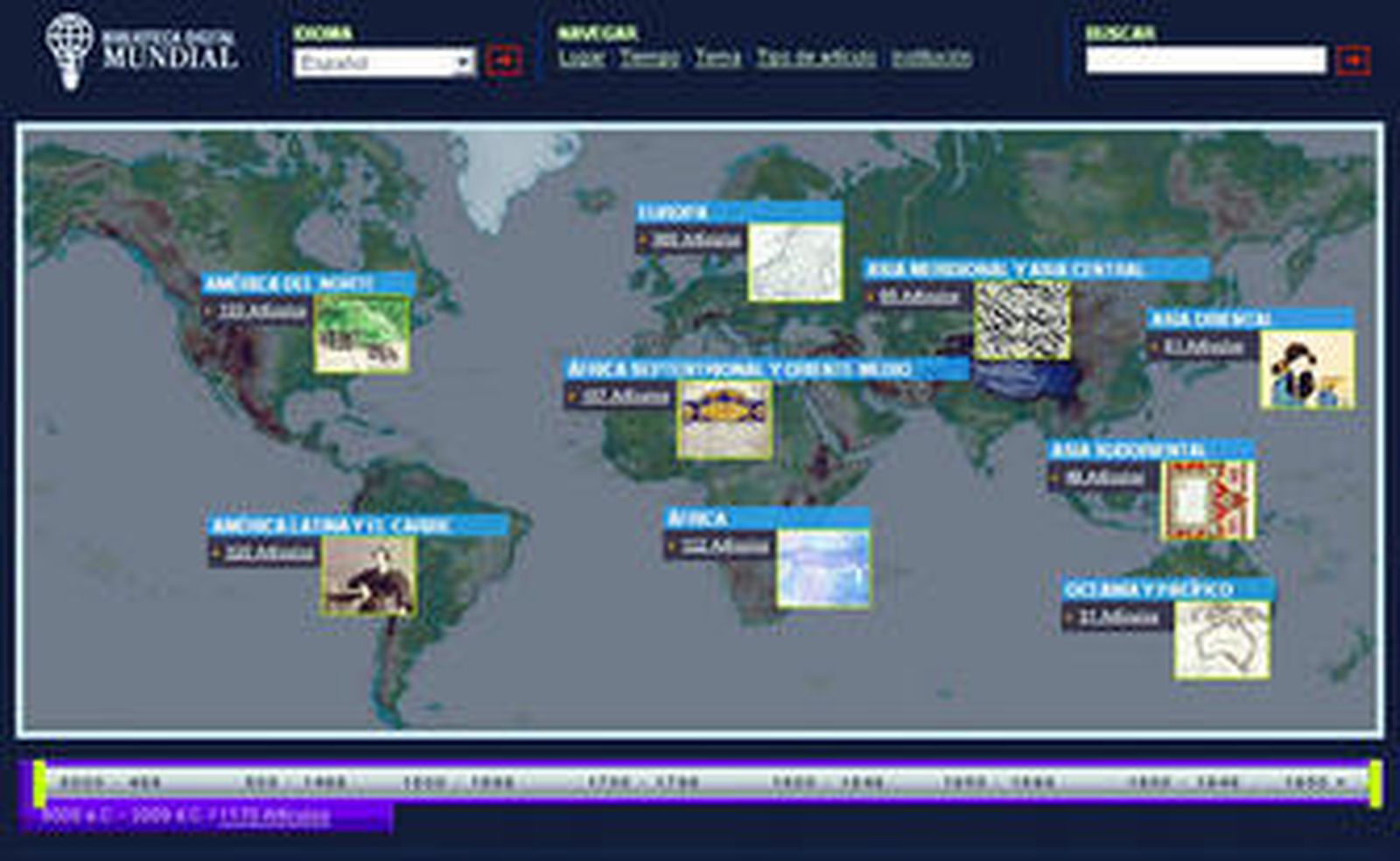 Presentada ayer en París en la sede de la Unesco, uno de los organismos impulsores del portal, la biblioteca ofrece por ahora, en consulta libre y gratuita, un total de 1.170 documentos originales clasificados siguiendo criterios geográficos, históricos, temáticos y de formato -se pueden encontrar manuscritos, libros, cartas, grabados, mapas, fotografías y registros audiovisuales-.