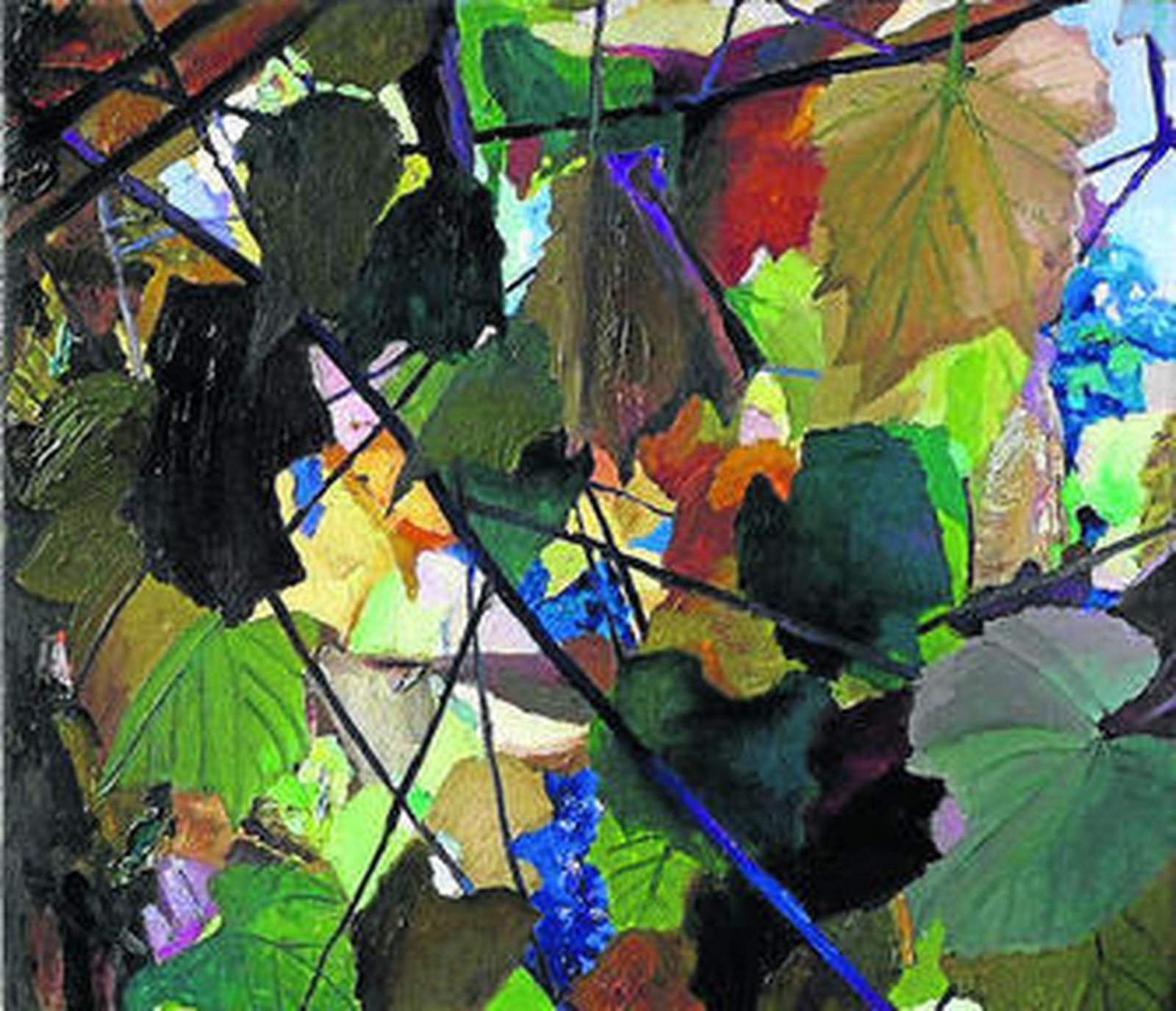 Pero esta afinidad no es una declaración literaria o filosófica: la hace presente la propia pintura. Sorprende que en algunas piezas de Buzón abunde la materia. La mirada atenta descubre sin esfuerzo que en ocasiones el objeto representado, helechos, hojas o ramas, se convierte simplemente en mancha o en grafismo, en pigmento acumulado por la mano del pintor. No es una deficiencia sino una inversión significativa: la pintura, en vez de representar literalmente el objeto, prefiere sugerirlo gracias a la ductilidad de la materia pictórica. El pigmento, por ser materia, se hace metáfora de la figura vegetal. Es una manera clara de mostrar la afinidad entre cuerpo y naturaleza, porque es el gesto, la mano del pintor, lo que deposita el color en el lienzo como si tocara la rama o la hoja.
