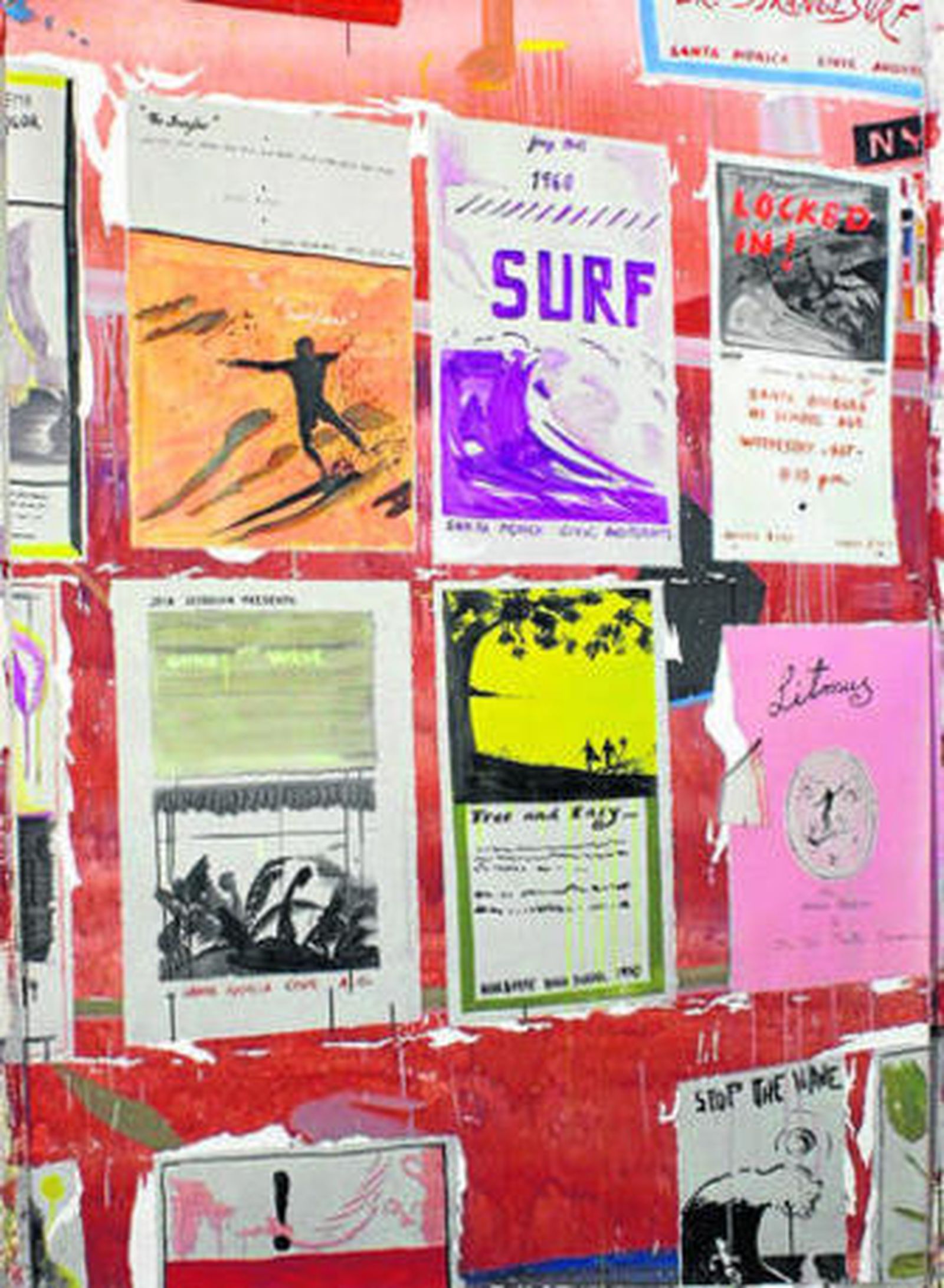 Vean por ejemplo el gran cuadro titulado Santa Mónica, Bodegón. Sin duda puede verse como una pared llena de carteles. También cabe pensar en Picasso, que ya pintó un Paisaje de carteles hace más de un siglo, y en Rosenquist y su gran mural que pronto cumplirá cincuenta años. Son dos modos de mirar este cuadro: algunos lo ven como réplica de una de esas paredes, tan abundantes en cualquier ciudad, donde envejecen los carteles y otros rebuscan en la historia del arte para rastrear precedentes o paralelos. Son dos miradas razonables, pero las dos dejan atrás el placer de la pintura.