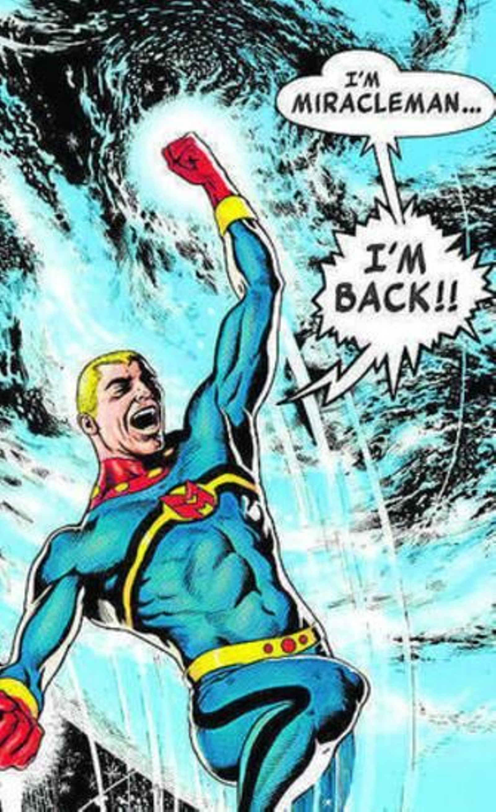 Los primeros cómics de Marvelman se publicaron durante nueve años, y merecerían solo una nota al pie en las enciclopedias de superhéroes si no fuera porque Alan Moore emprendió, en 1982, una inolvidable revisión en la revista Warrior. Moore subvirtió el origen de Marvelman y concedió a sus nuevas aventuras un tono realista, potenciado por el dibujo de Garry Leach, al que pronto siguió Alan Davis. El cambio de nombre a Miracleman se produjo cuando la serie dio el salto al mercado estadounidense de la mano de Eclipse, para evitar problemas con la editorial. Y tras la quiebra de Eclipse comenzaron más conflictos legales que eliminaron todo rastro de Miracleman de las librerías, para lamento de los aficionados.