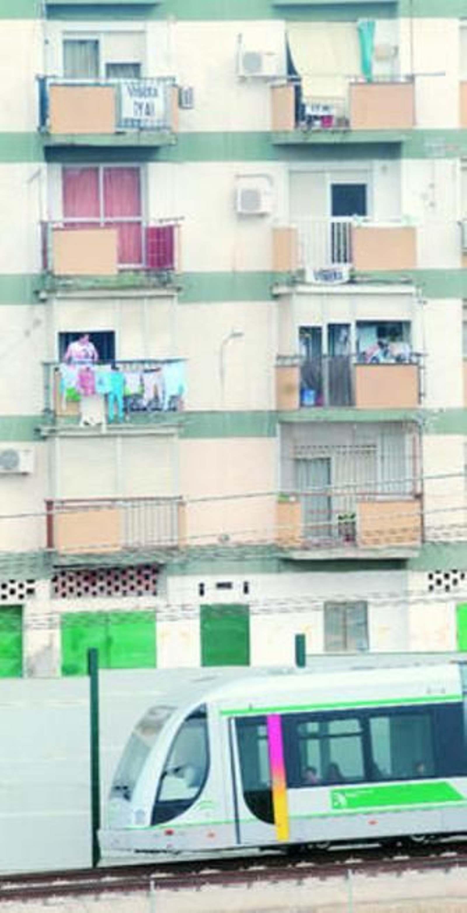 En los bloques de la barriada Virgen del Rocío, los más pegados al tren junto a la estación de San Juan Alto, pueden leerse pancartas con el lema Visera ya. Una está en el piso en el que vive Magdalena desde hace 36 años, antes de que trazaran la autovía. "Mi nieta de tres años lo nota y me avisa cuando viene". Pero el ruido es menos molesto aquí que en Cornisa Azul y, según la mujer, nada tiene que ver con el que soportaron con las obras. Entonces, se movían lámparas y cristales. "Por las noches, cuando estoy acostada, la habitación se ilumina con los chispazos", señala, como la principal incidencia del suburbano en su vida. En cuanto al ruido, hay otros vecinos a los que les molesta más.