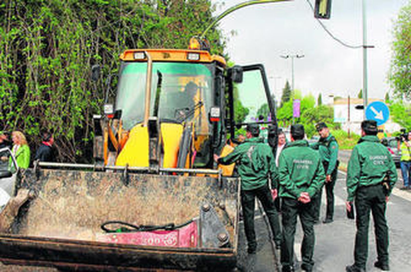 La Guardia Civil impidió este lunes que operarios del Ayuntamiento de Espartinas arrancaran con una retroexcavadora, siguiendo órdenes del alcalde, Domingo Salado (PP), el semáforo que la Junta mantiene en la carretera A-8076, a la altura de la urbanización Roalcao y al que culpa de los atascos -hasta tres kilómetros en horas punta- que se producen a la salida y entrada al municipio hacia o desde la A-49, que también afecta a vecinos de Villanueva del Ariscal.