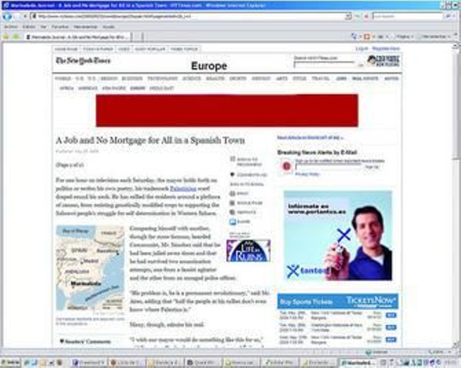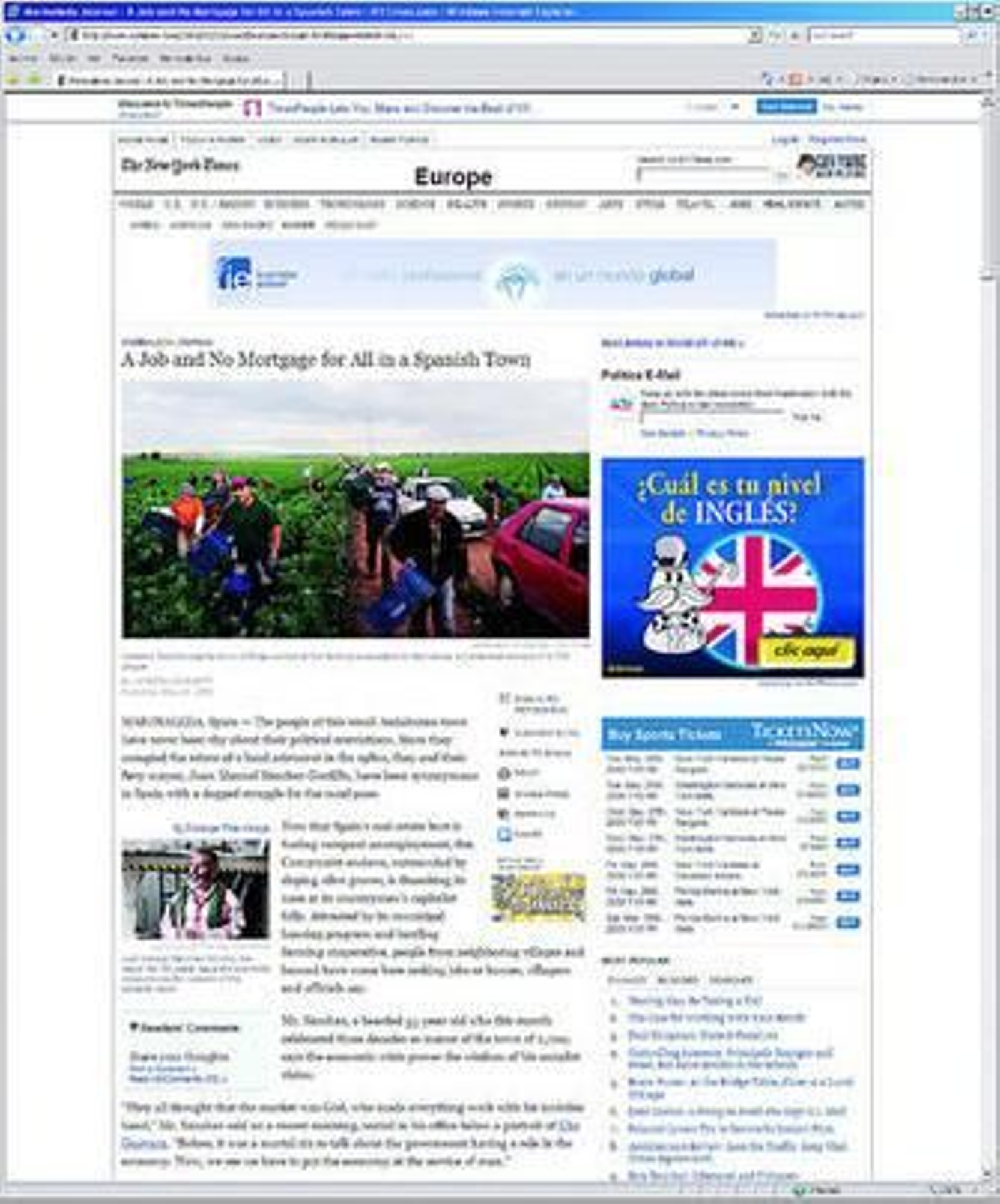 La localidad sevillana de Marinaleda, y especialmente la figura de su alcalde, Juan Manuel Sánchez Gordillo, son los protagonistas de un reportaje publicado ayer por el histórico periódico estadounidense The New York Times, en el que se analiza el peculiar modelo cooperativista implantado en el municipio. Bajo el título de Nada de hipotecas y un trabajo para todos en un pueblo español (A job and No Mortgage for All in a Spanish Town), la corresponsal en España de este diario liberal, Victoria Burnett, realiza un recorrido por las luces (y algunas sombras) que han hecho de Marinaleda una rara avis en la decaída economía española.
