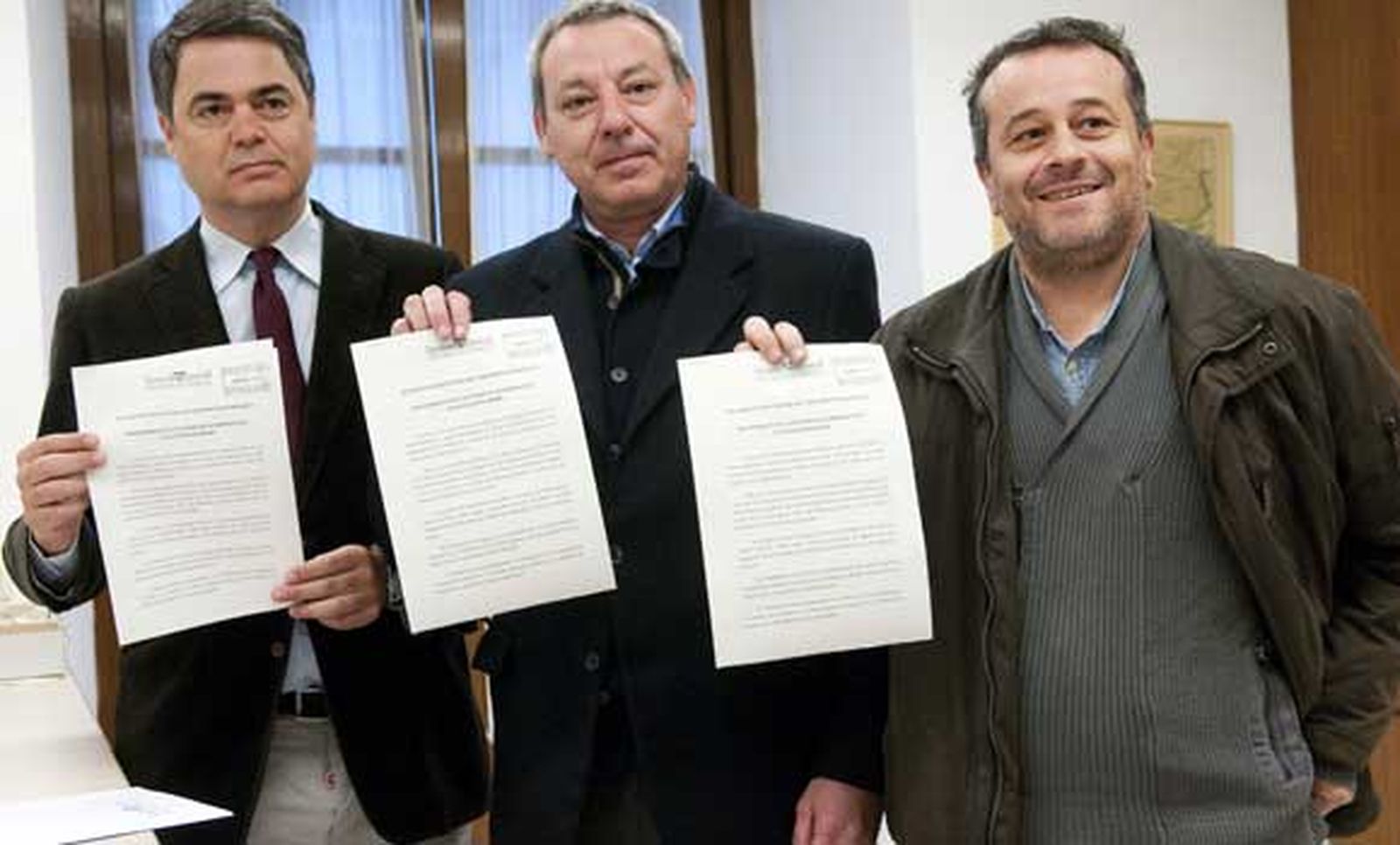 Los portavoces del PP, Carlos Rojas (PP), del PSOE, Francisco Alvarez de la Chica, y de IULV-CA, José Antonio Castro han presentado este miércoles en el Parlamento de Andalucía una declaración que rechaza el cierre de la planta de Roca en Alcalá de Guadaíra e insta al Gobierno y a la Junta a evitarlo.